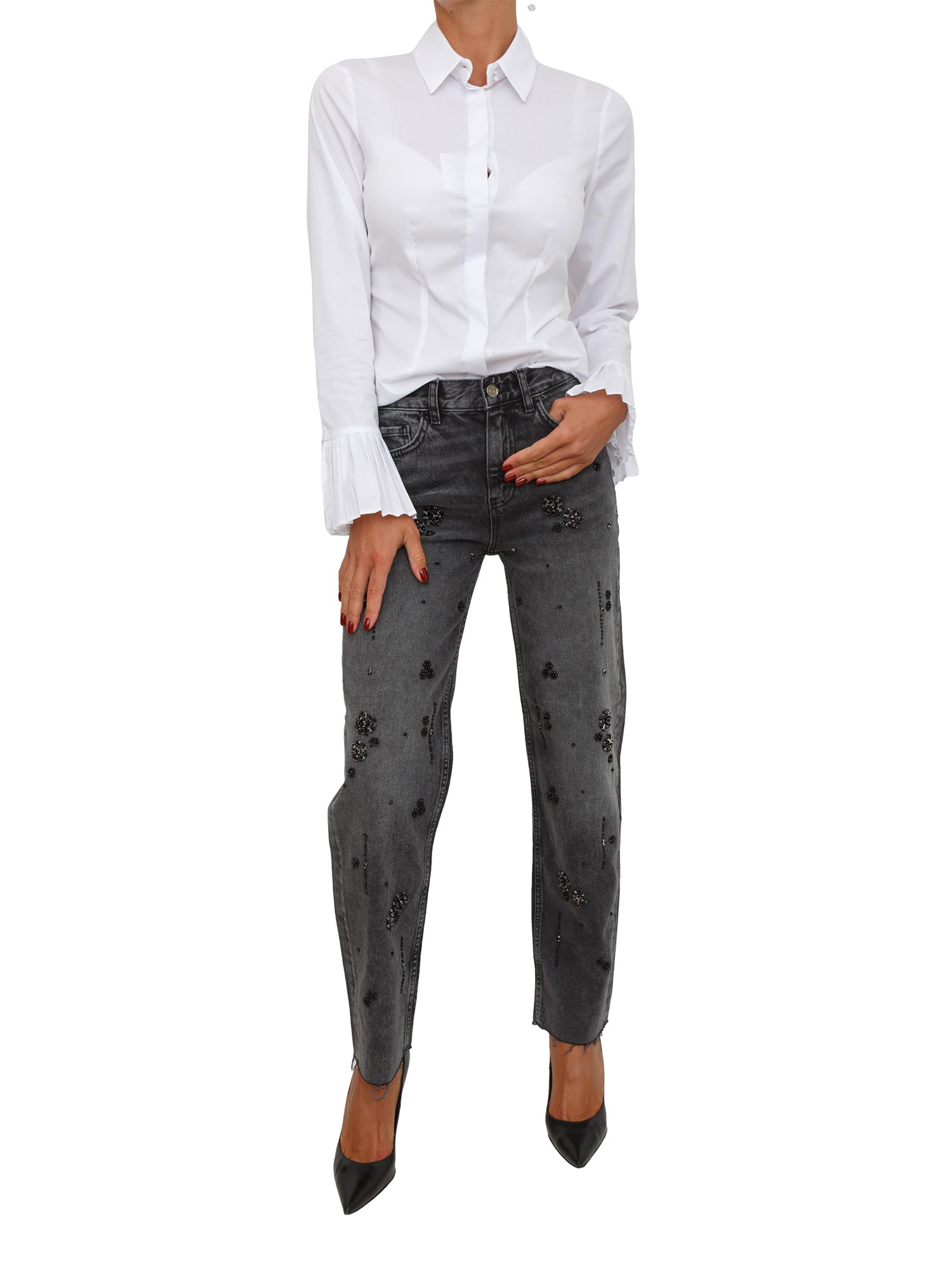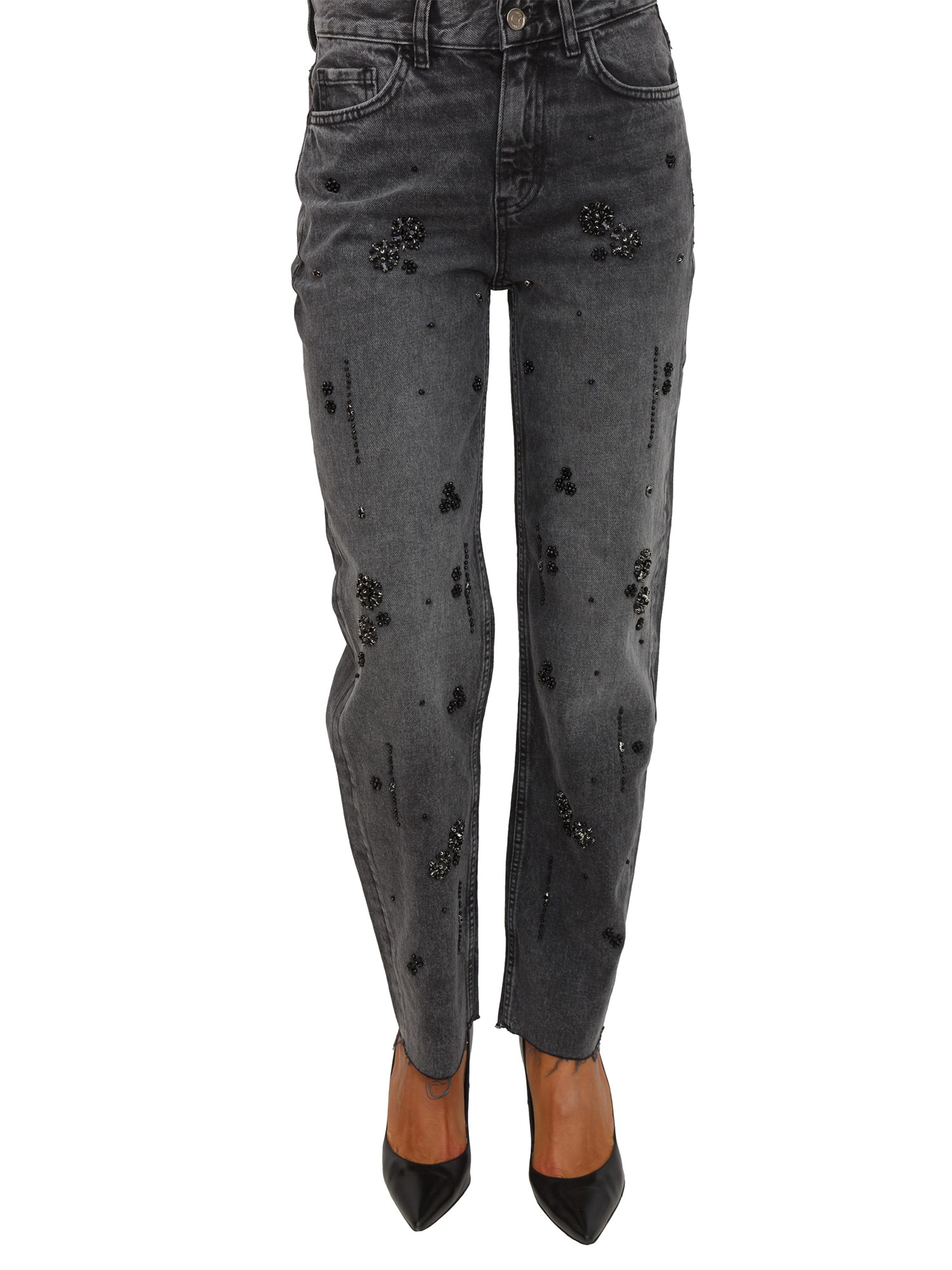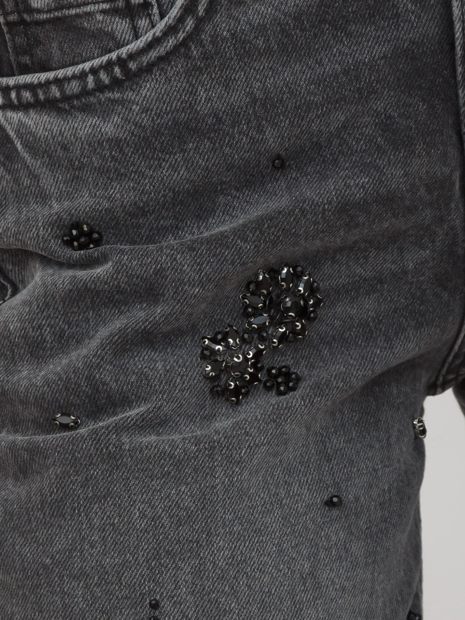 Jeans cropped Liu Jo donna in denim nero effetto used con strass
