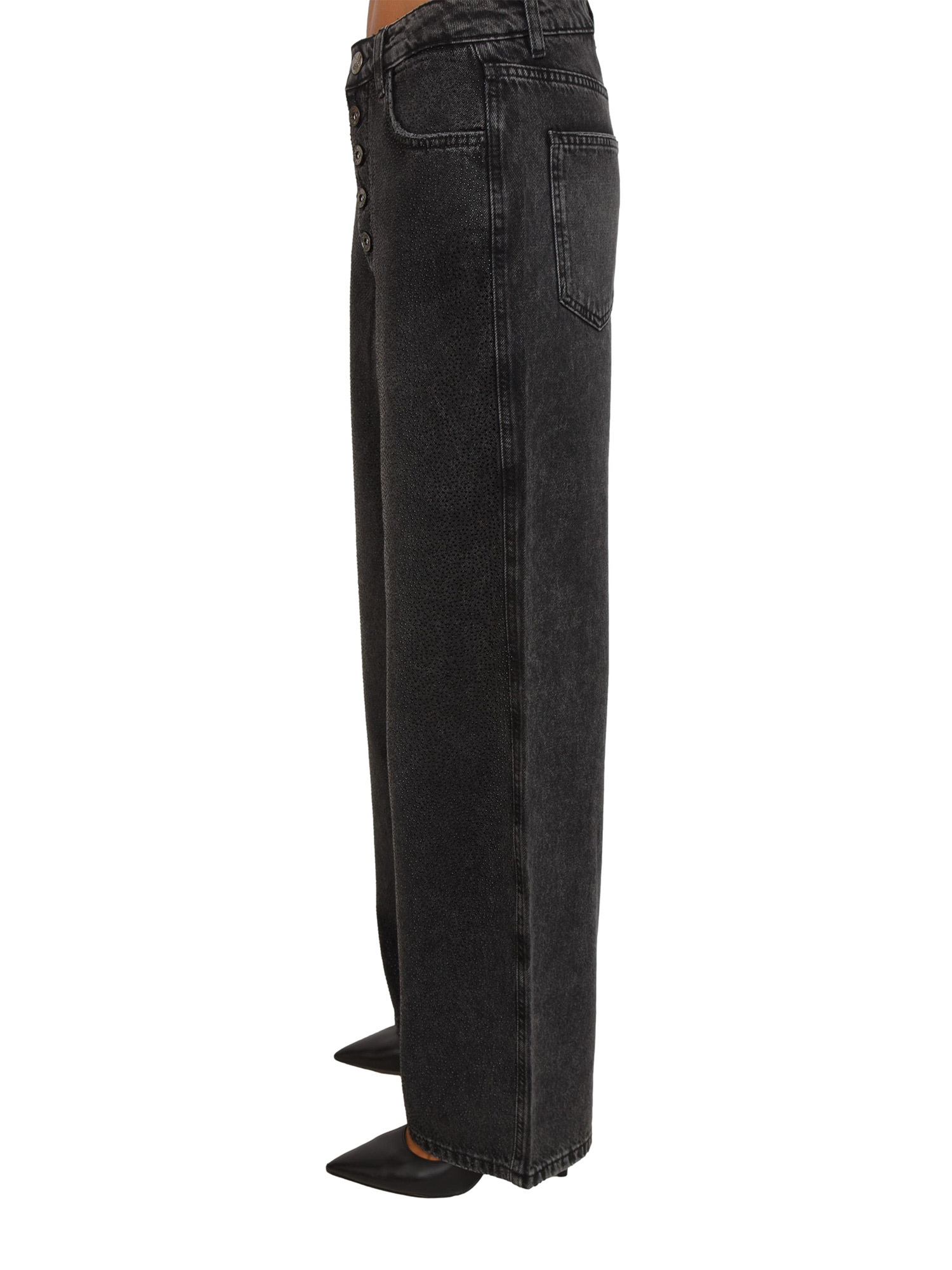 Jeans carrot Fracomina realizzati in denim nero con lavaggio scuro e strass applicati all over sulla parte davanti. Design a vita alta con bottoni logati tono su tono, 5 tasche e con fondo dritto. Stupendo e stiloso. La modella è alta 1.77 e indossa la taglia 26.