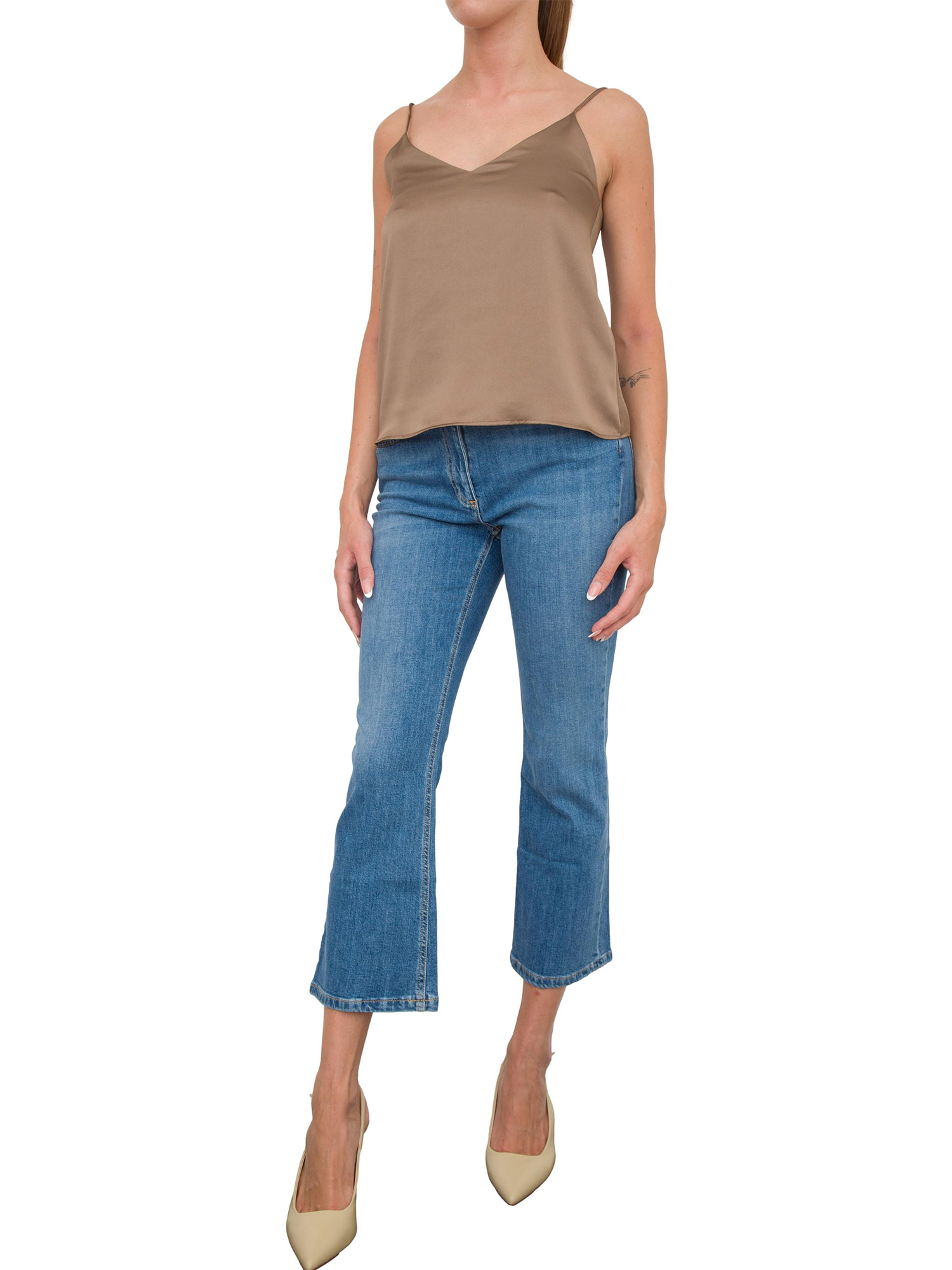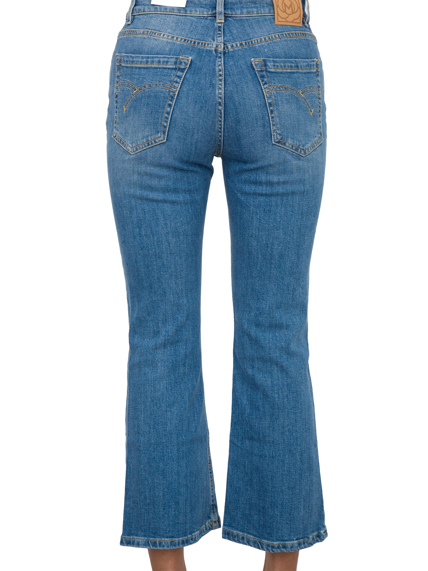 eans in tessuto contenente cotone coltivato attraverso una coltura rigenerativa che permette di migliorare la qualità del suolo. La tintura è ottenuta con tecnologia Indigo Juice, una tintura superficiale che consente di trattare il capo finito con un ridotto consumo di acqua.La modella è alta 1.80m e indossa la taglia 42.