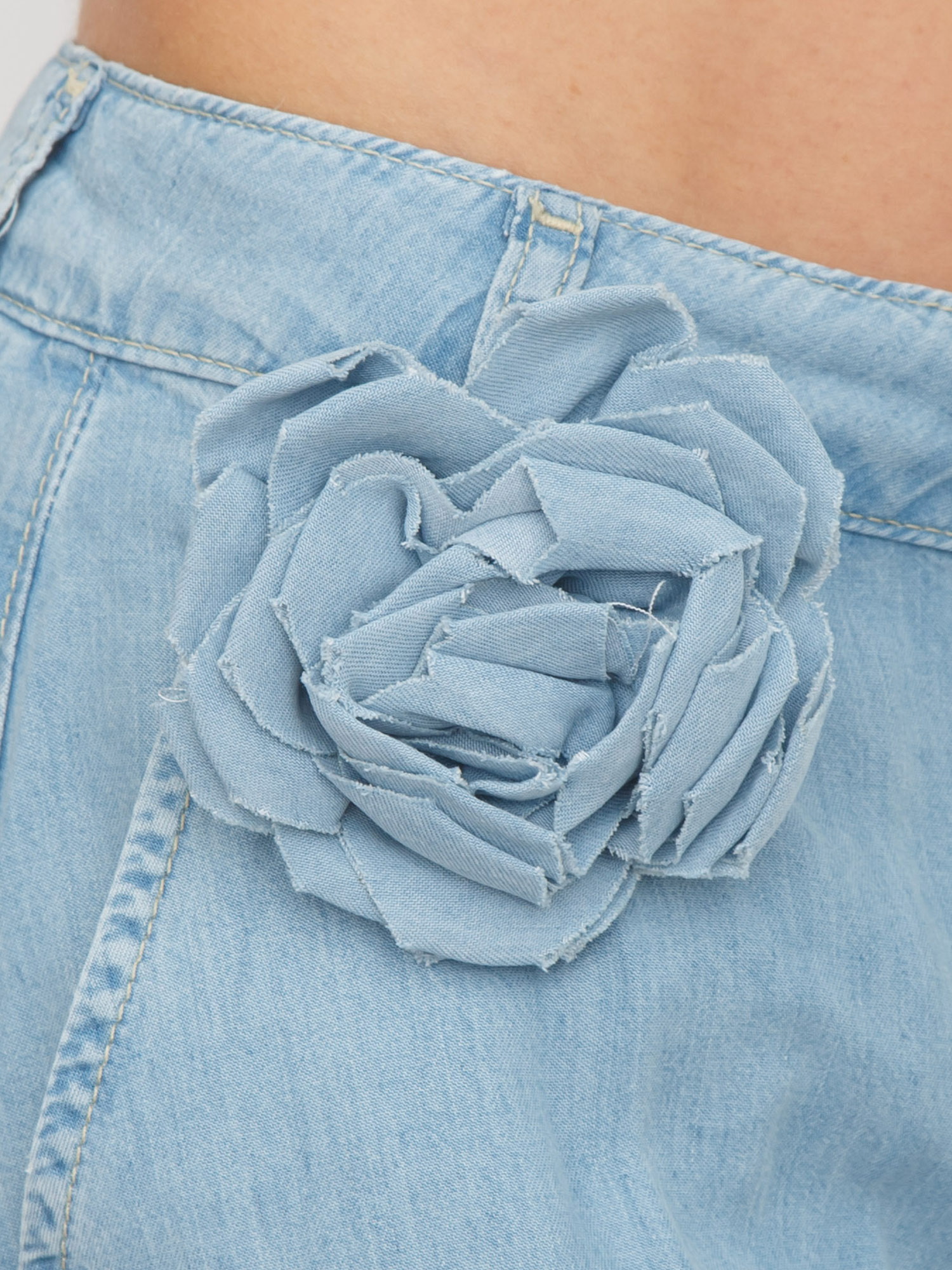 La versione perfetta del denim per le temperature più calde. Scegli i jeans dritti Blugirl in denim lyocell con chiusura zip e bottone, tasche ai fianchi e spilla a rosa in vita. Base perfetta per una miriade di look. Abbinali alla camicia in coordinato di collezione. La modella è alta 1.72 e indossa la taglia 26.