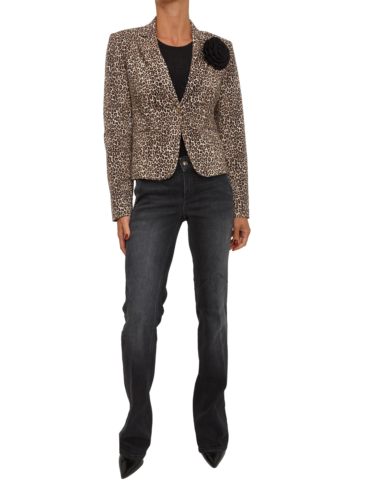 Jeans Liu Jo donna realizzati in denim di cotone stretch con tagli bottom up e lavaggio used. Modello a vita bassa, gamba slim che si allarga e salpa logata. La modella è alta 1.72 e indossa la taglia 26.