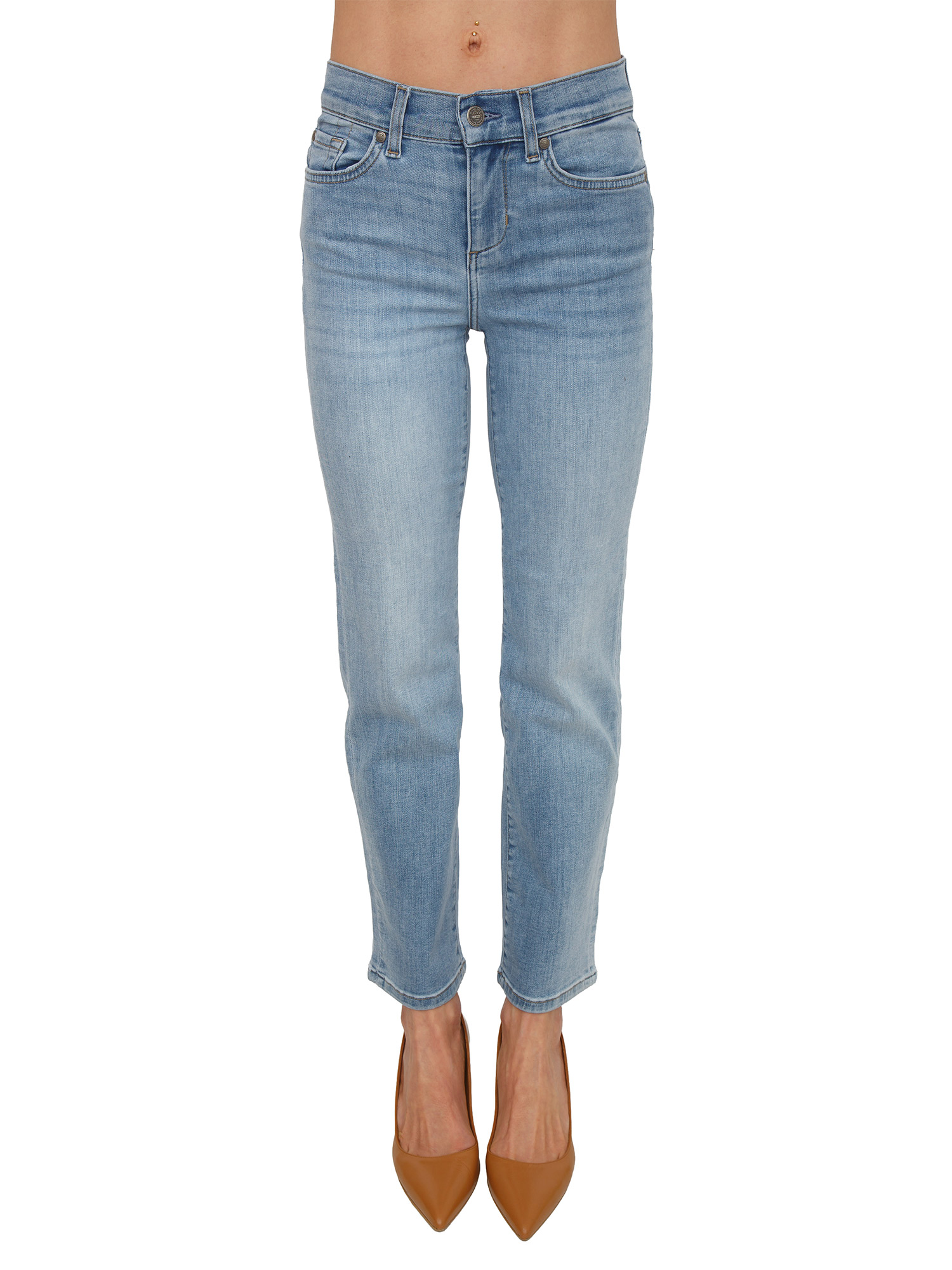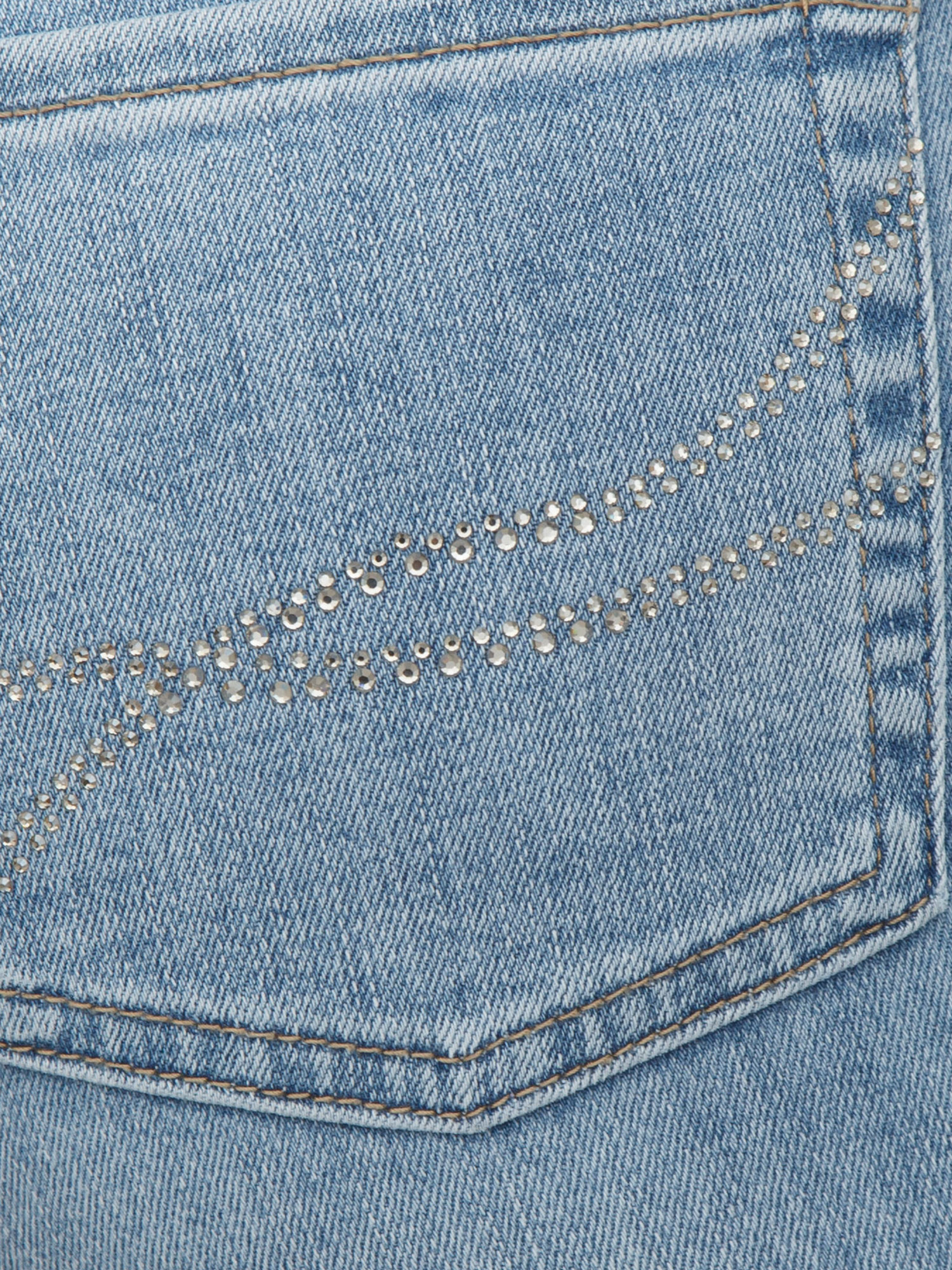 Jeans cropped Liu Jo donna realizzati in denim di misto cotone con lavaggio effetto used e vestibilità slim. Lunghezza alla caviglia che si adatta perfettamente alla tua silhouette. Tasche con applicazioni strass. La modella è alta 1.72 e indossa la taglia 26.