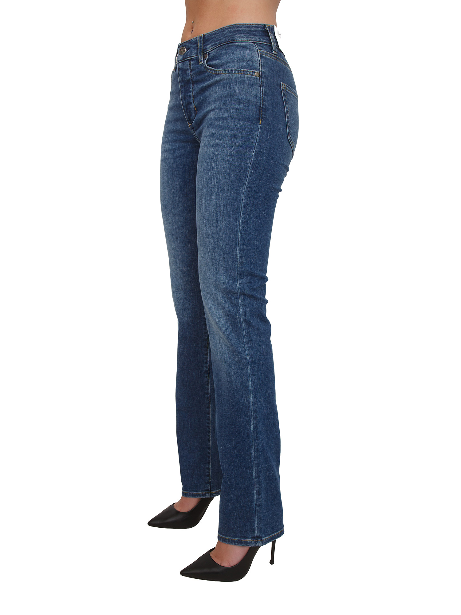 Jeans Liu Jo donna realizzato in denim stretch con lavaggio stonewash con baffi e graffiature. Design con vita alta, comode tasche e gamba dritta.