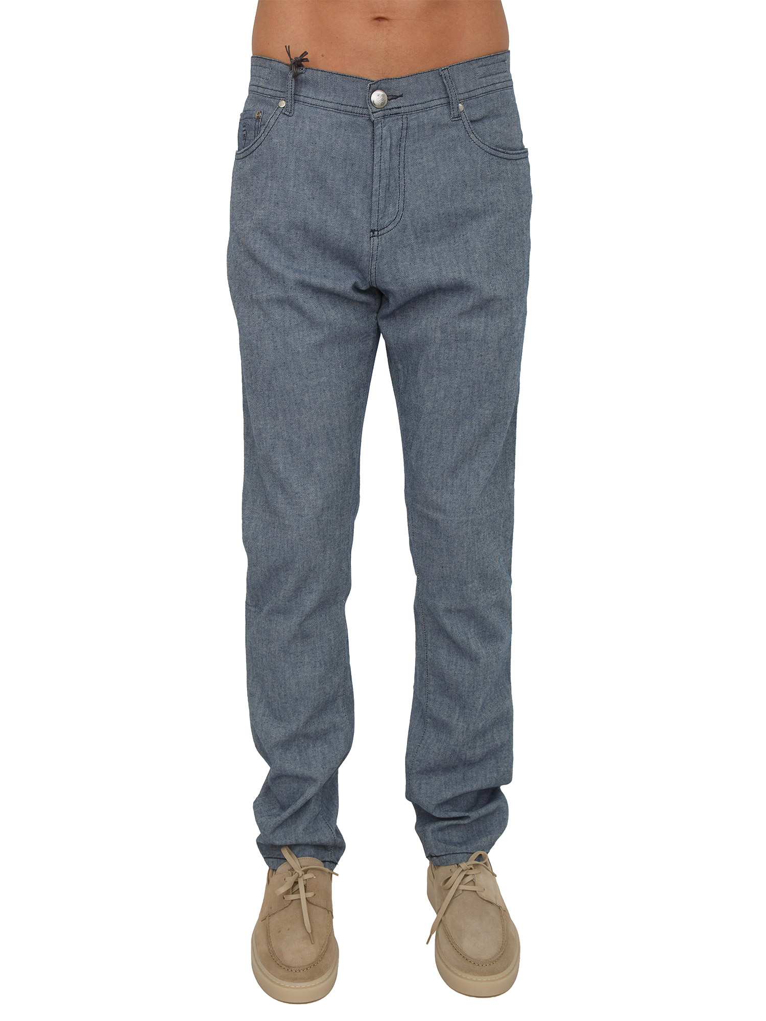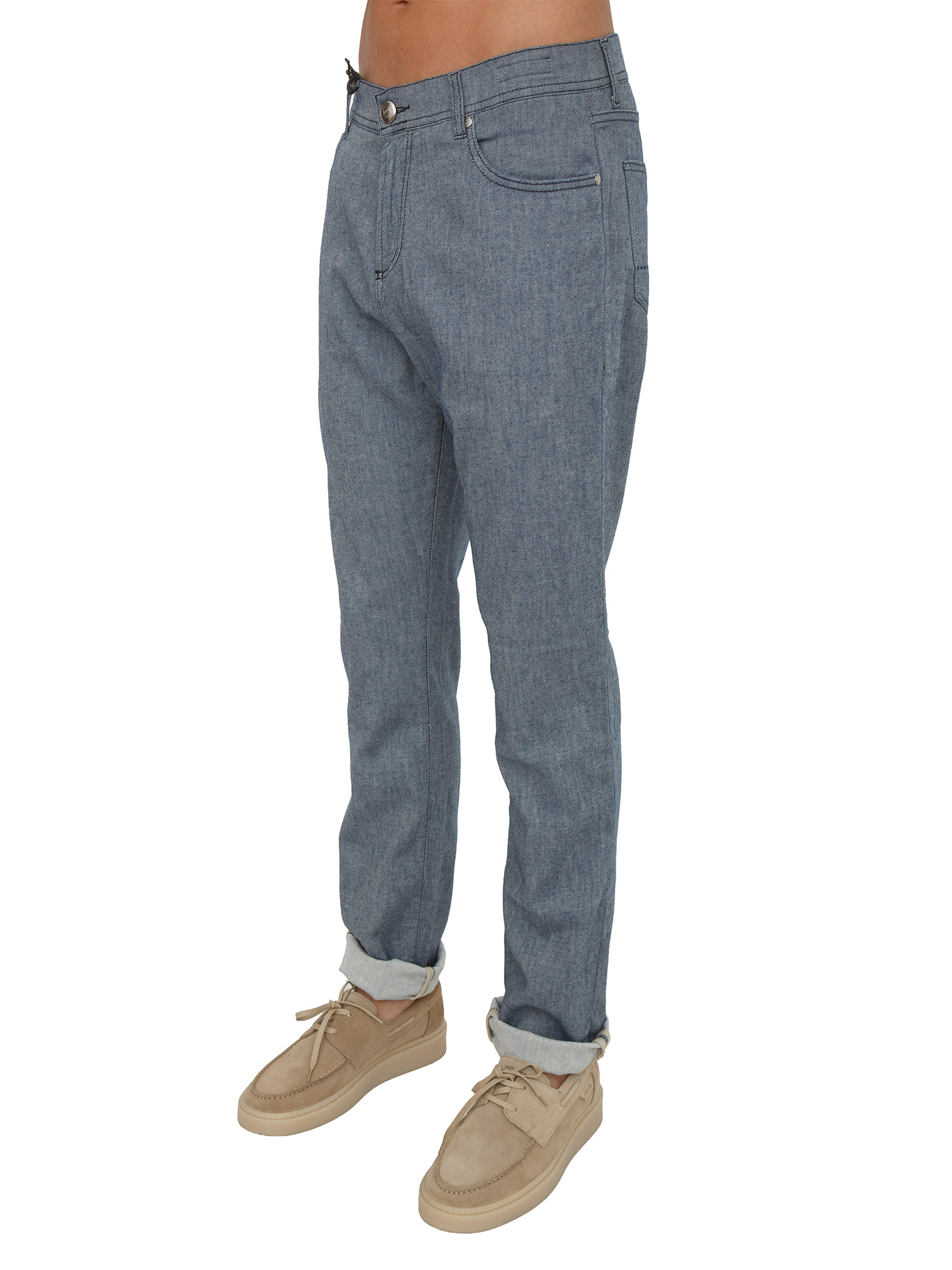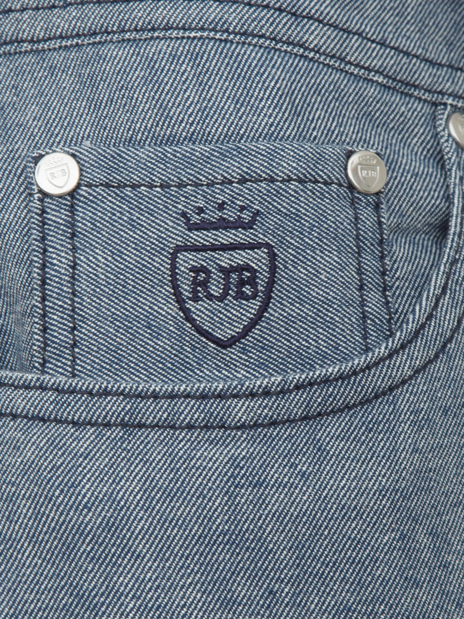 Jeans "Milano" Richard J. Brown realizzato in denim stretch di cotone con vestibilità regular. Design rifinito con punto a mano sulle tasche posteriori tono su tono e la salpa in pelle che ne esaltano il carattere rendendolo sofisticato e mai banale. Il modello è alto 1.90m e indossa la taglia 32.