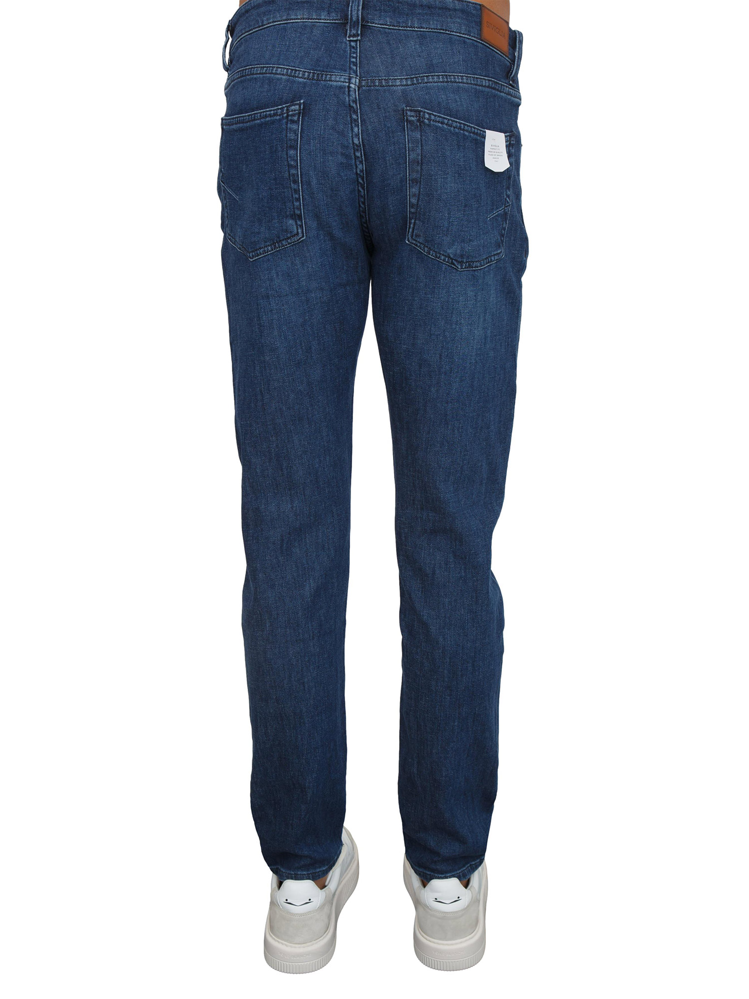 Jeans Siviglia uomo realizzati in denim di cotone blu con vestibilità slim. Sono il connubio perfetto tra il modello skinny e il classico modello affusolato da indossare ad ogni occasione. Il modello è alto 1.90m e indossa la taglia 31.