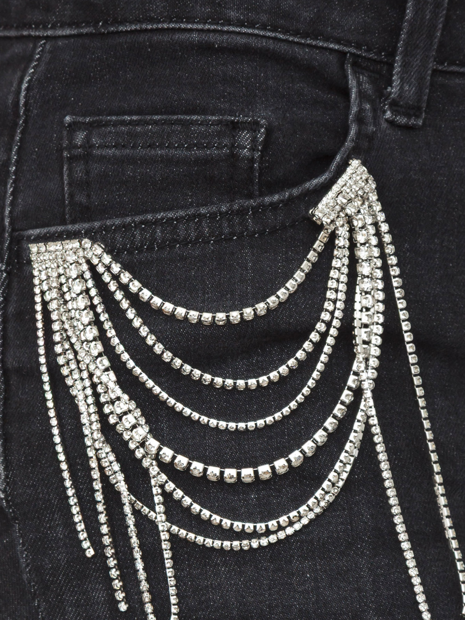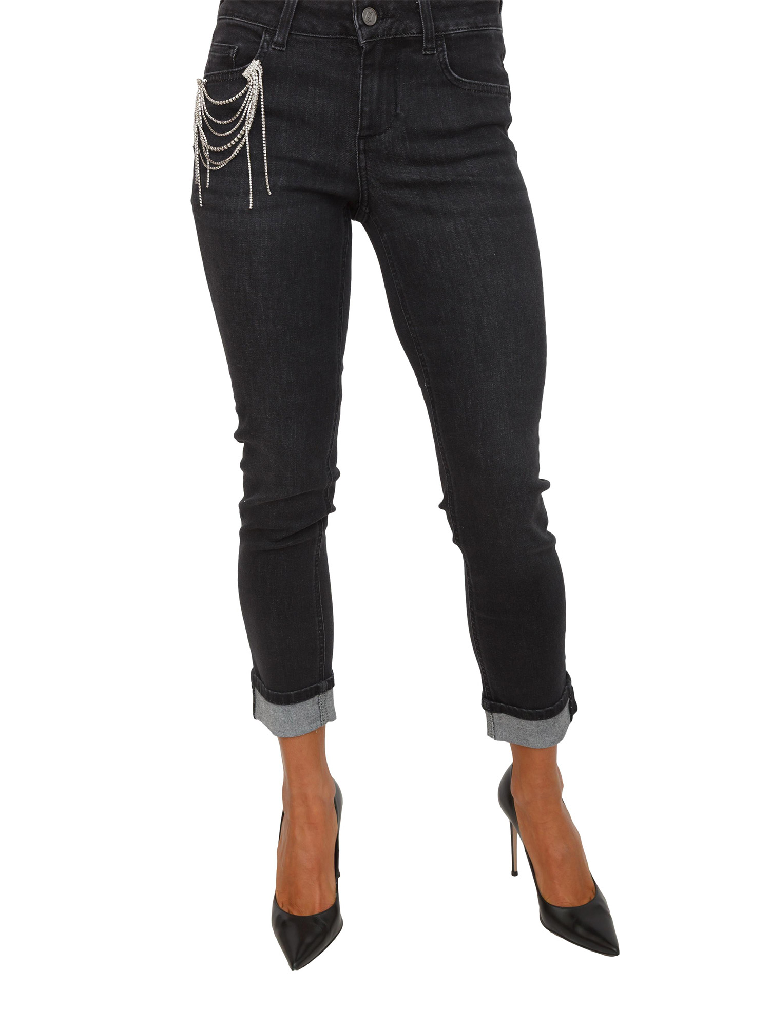 Jeans skinny Liu Jo donna in denim nero con spilla removibile