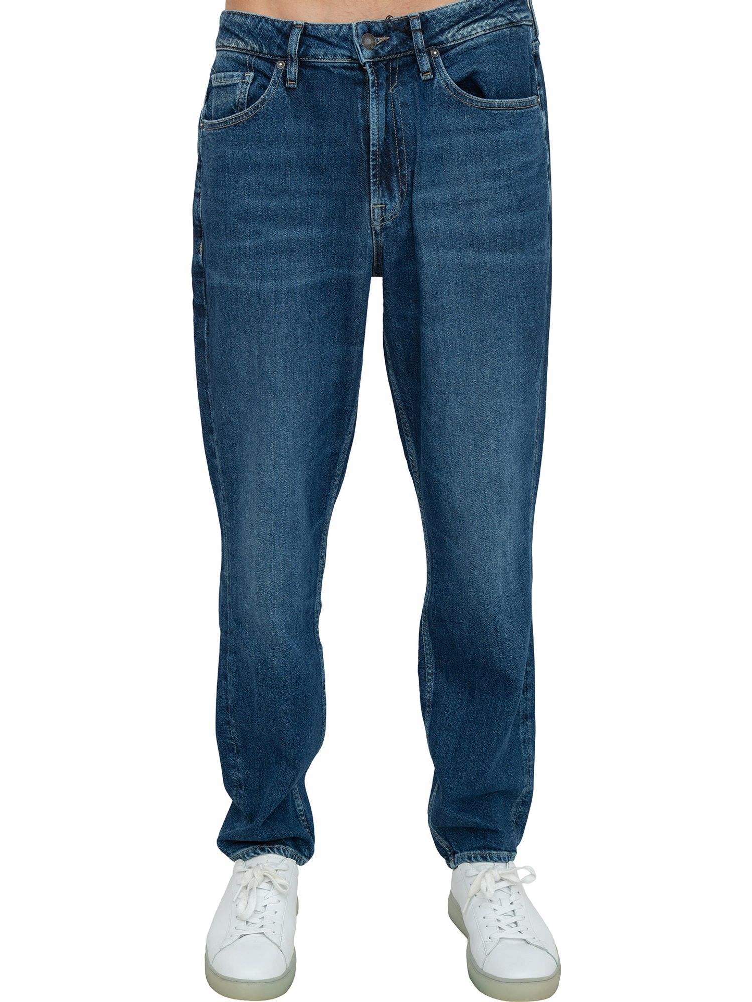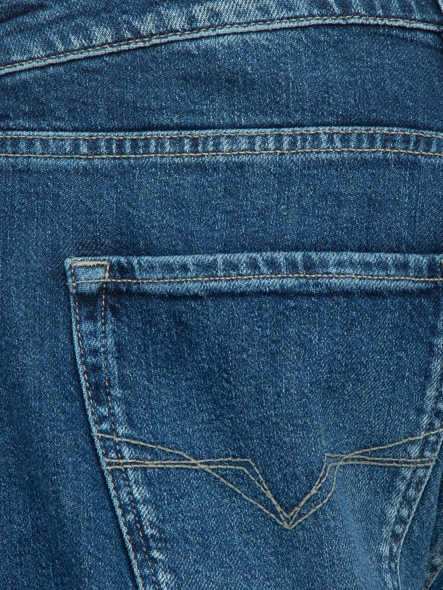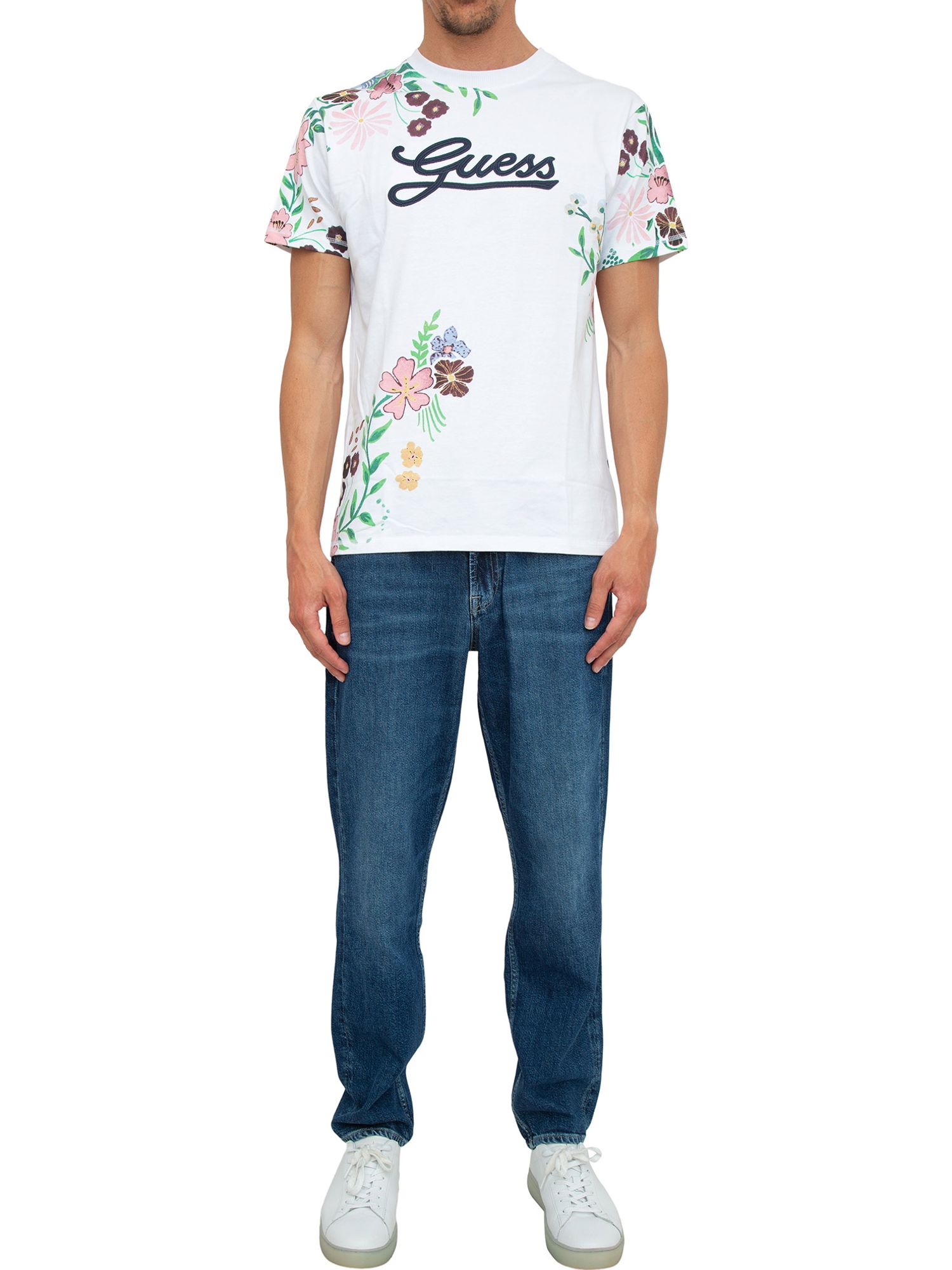 Jeans Guess in cotone, vestibilità regular, vita media, modello 5 tasche classico e chiusura frontale con zip e bottone.