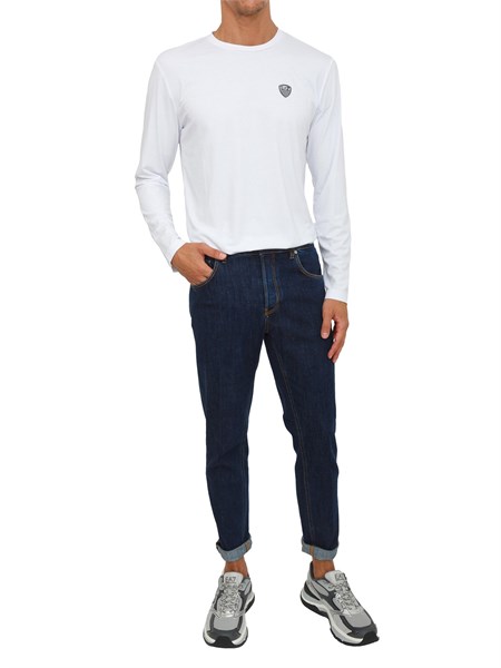 Jeans uomo Jacob Coh[and]euml;n, realizzati in tessuto denim super stretch blu scuro, perfetti per garantire comodità ed eleganza al tuo stile. Caratterizzati da una vita regolare, design a cinque tasche con logo ricamato, salpa con applicazione logo e bottoni dorati logati, questi jeans sono l'ideale per ogni occasione. Perfetti sia per outfit casual che per look formali ed eleganti, i jeans Jacob Coh[and]euml;n sono sinonimo di qualità e stile esclusivo.Aggiungi un tocco di raffinatezza al tuo guardaroba con Jacob Coh[and]euml;n.Il modello è alto 1.90m e indossa la taglia 32.