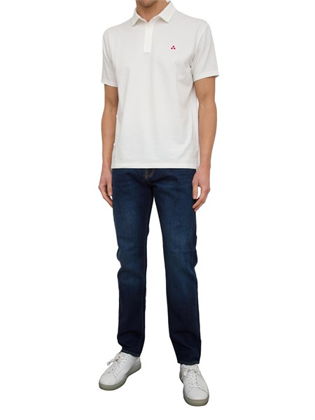 Jeans uomo PT Torino realizzato in denim di puro cotone, una tela ferma, strutturata e che dura nel tempo. È caratterizzato da un lavaggio scuro, cinque tasche, linea carrot e un aspetto deciso. Perfetto con T-shirt e mocassini per un look casual curato.