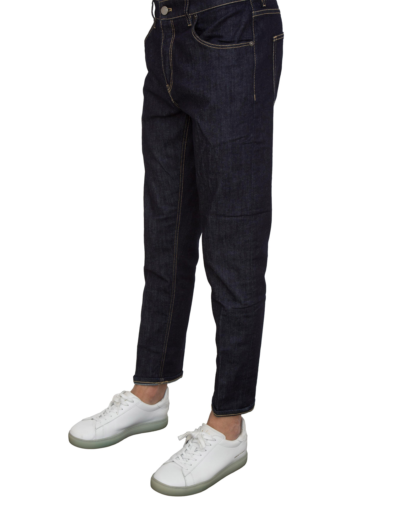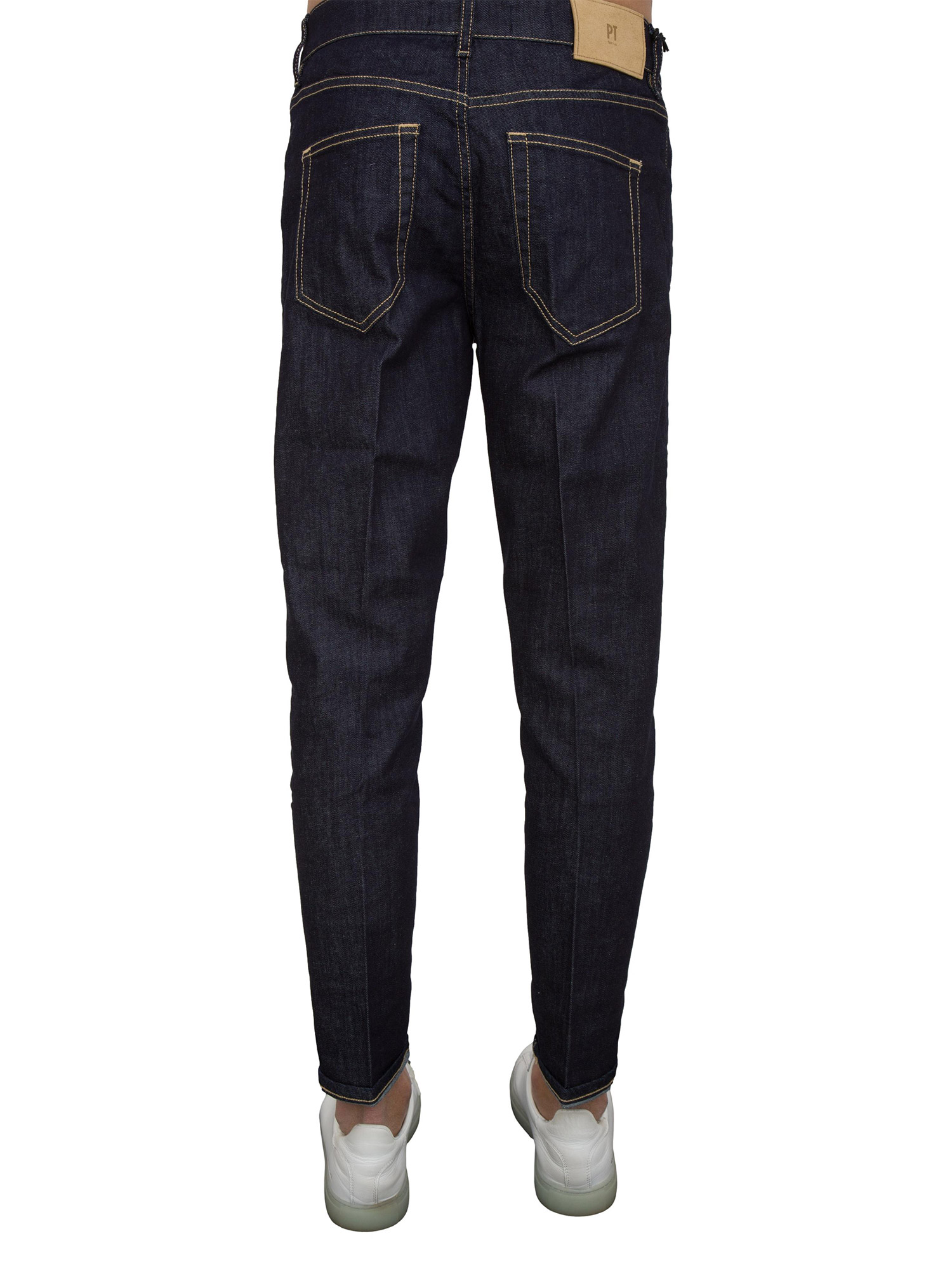 Jeans uomo PT Torino in denim scuro e linea carrot con piega stirata