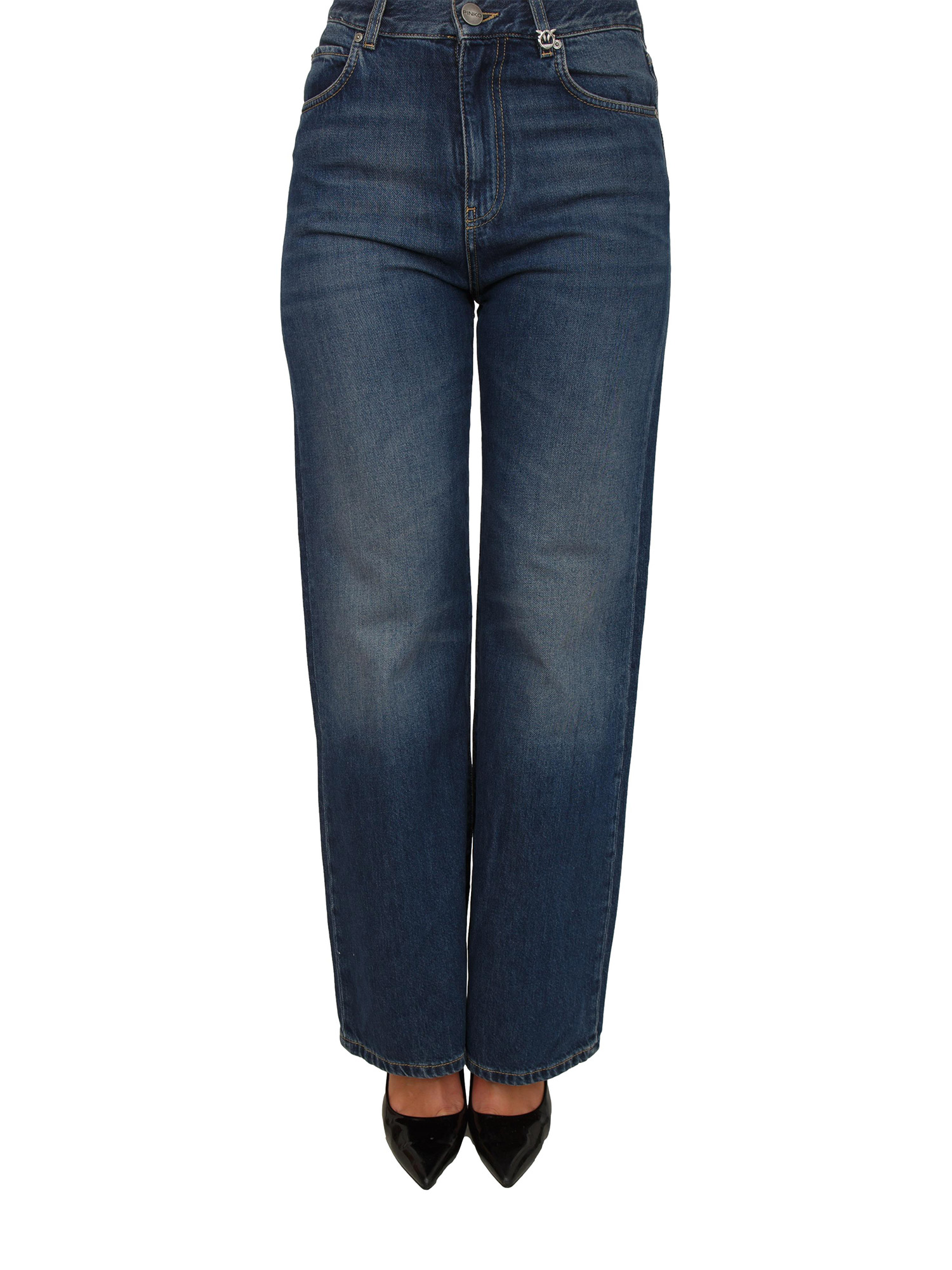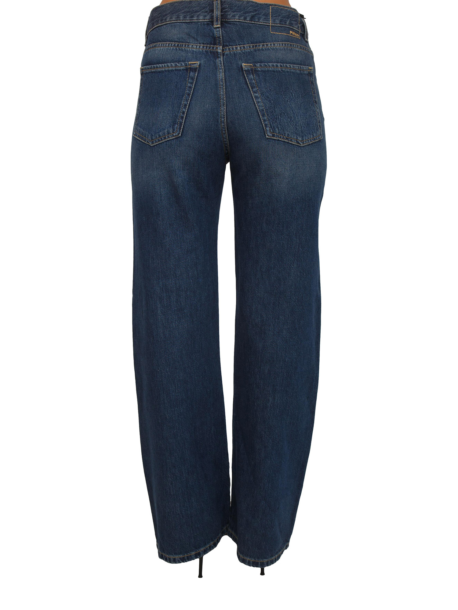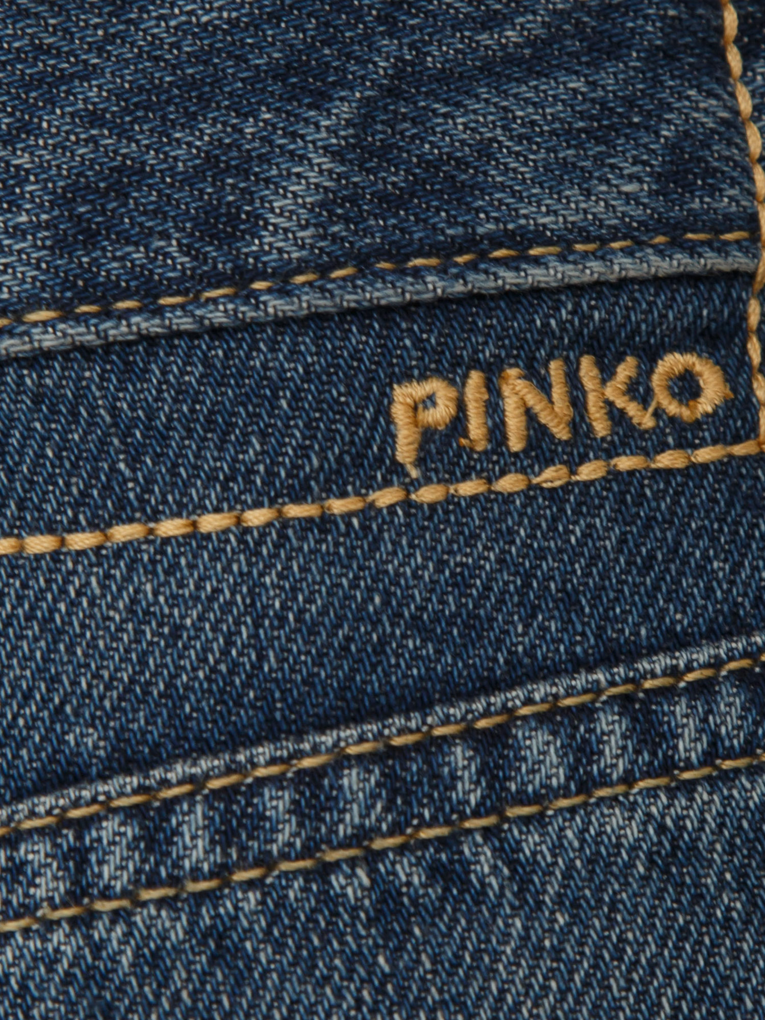 Jeans cinque tasche Pinko modello wide leg con gamba dritta e ampia, realizzati in soft denim di cotone e lyocell per una mano più fluida e trattati con lavaggio stone wash. Gioca con gli abbinamenti e indossa questi jeans con la vita scesa e il cavallo basso per un look più maschile. La modella è alta 1.77 e indossa la taglia 26.