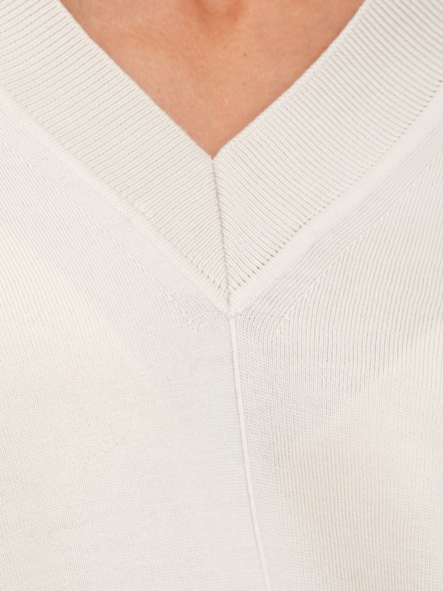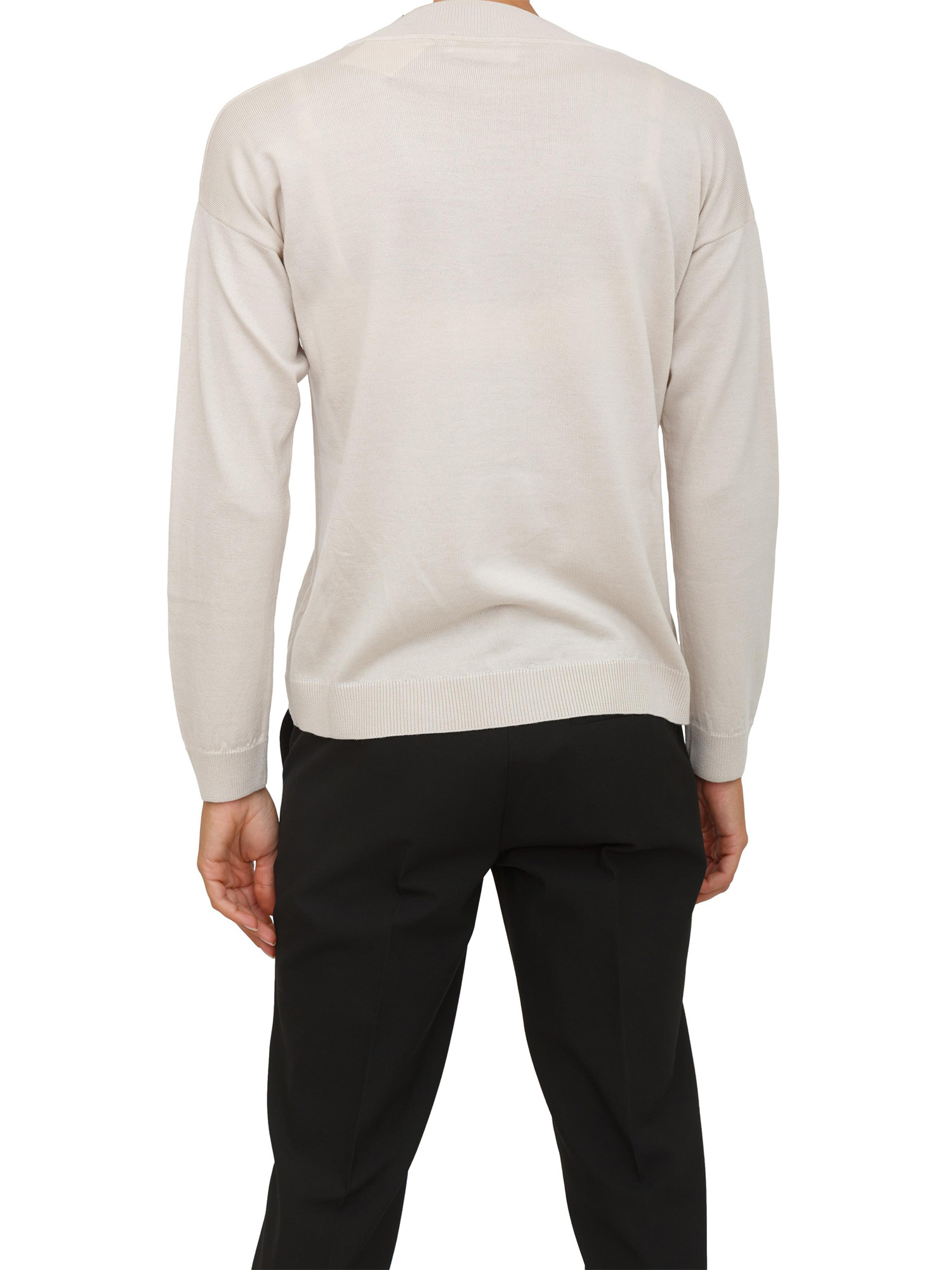 Maglia Anna Molinari realizzata in misto lana con scollo a V e maniche lunghe. Modello dritto con bordi lavorati a costine e cucitura centrale verticale sul davanti che dona un tocco contemporaneo a questo capo. Ideale su ogni outfit casual. La modella è alta 1.72 e indossa la taglia 40.