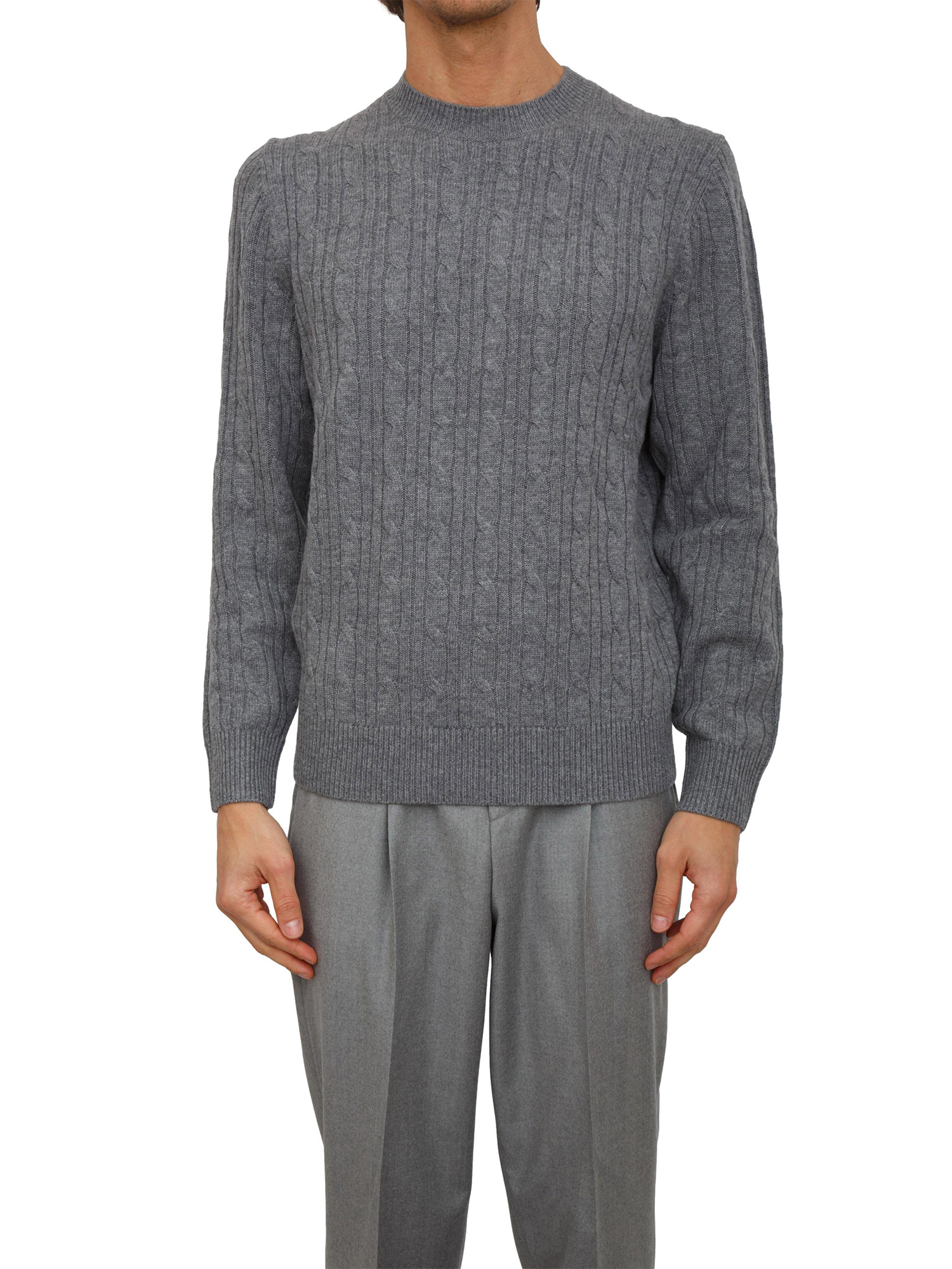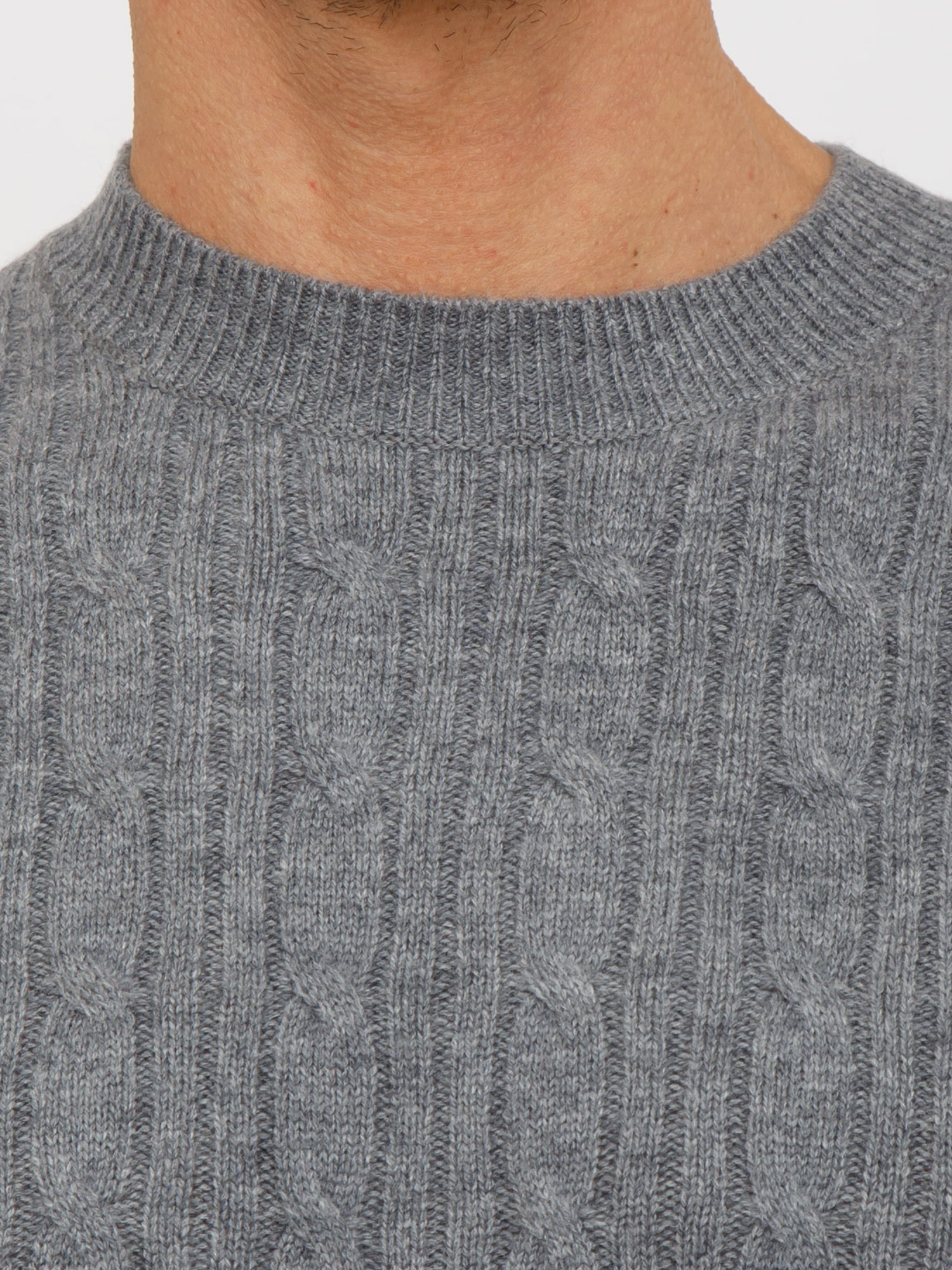 Maglia Boss uomo a trecce in cashmere e lana grigio