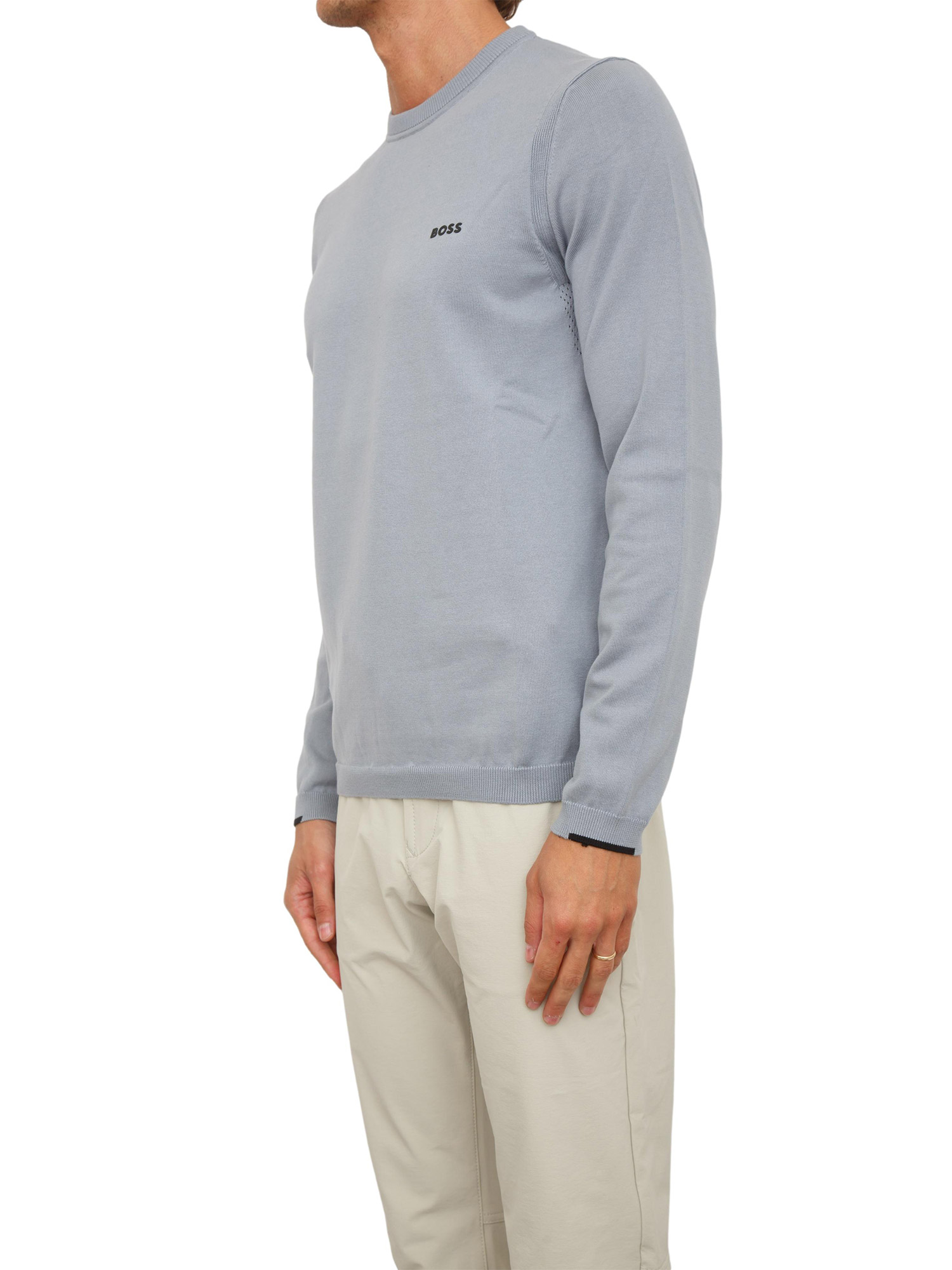 Caratterizzato da trafori integrati e cuciture ergonomiche a coste, questo maglione BOSS Uomo assicura comfort, traspirabilità e flessibilità. Realizzato in morbido cotone. Profili e logo a contrasto. Il modello è alto 1.90m e indossa la taglia L.