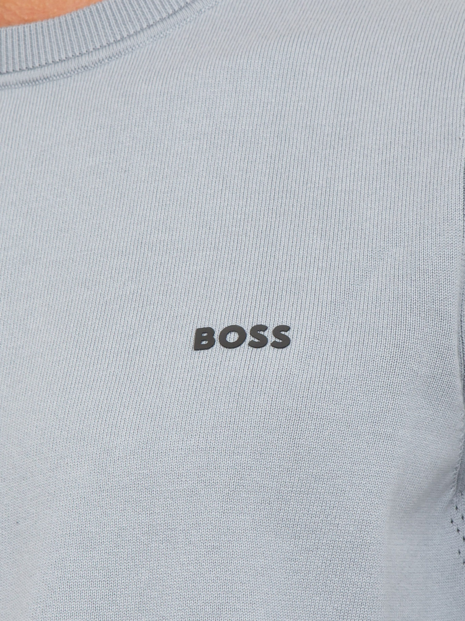 Maglia Boss uomo in cotone grigio e logo a contrasto