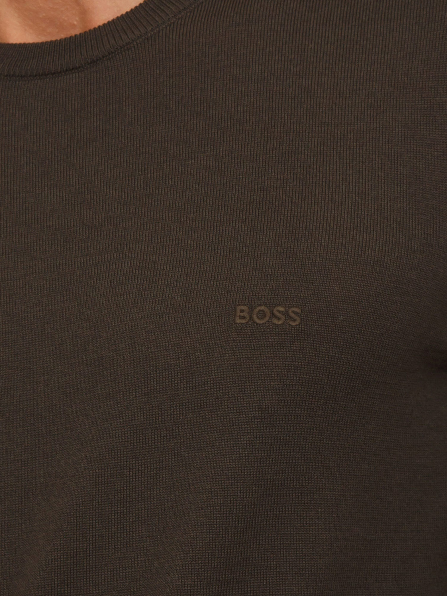 Realizzato in lana vergine termoregolante, questa maglia BOSS Uomo è un must per ogni guardaroba maschile. Logo ricamato. Vestibilità regular fit a girocollo e polsini a costine. Il modello è alto 1.90m e indossa la taglia L.