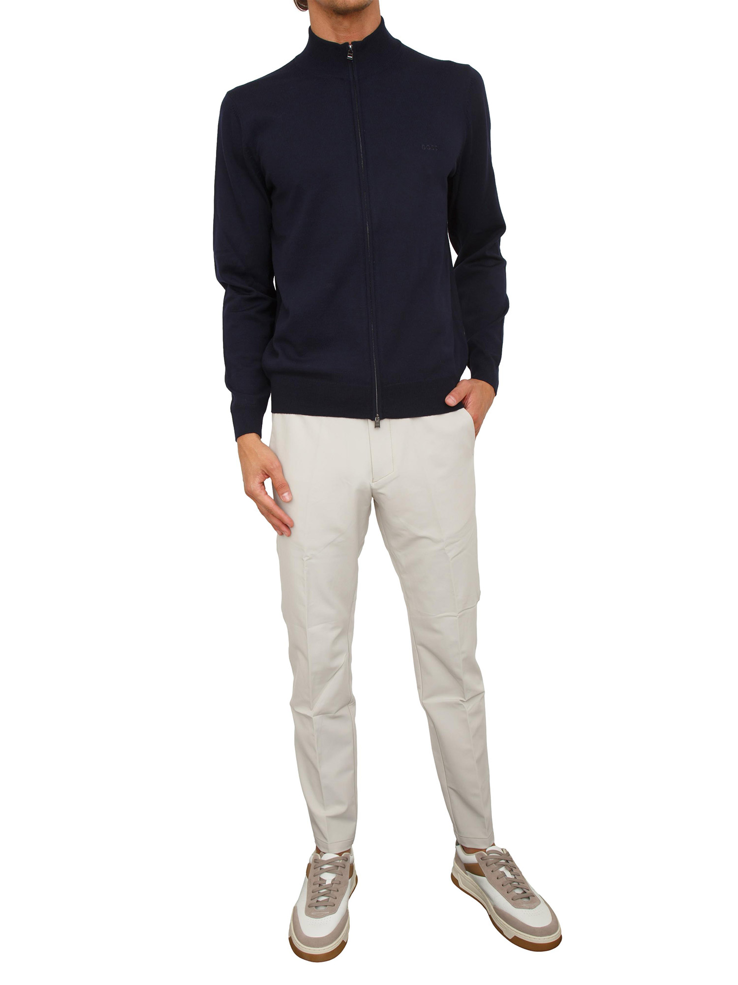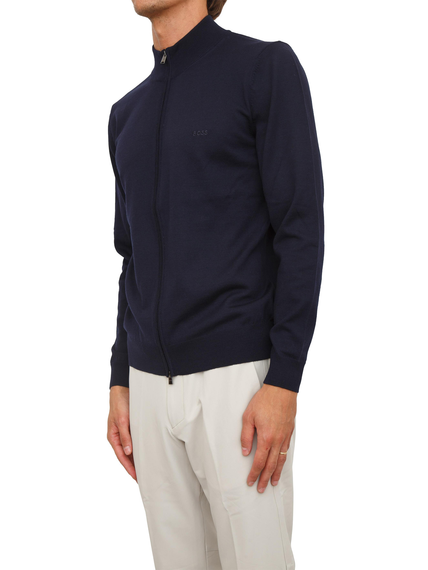 Crea look a strati con questo cardigan BOSS Uomo realizzato in morbida lana vergine con vestibilità regular fit. Zip a doppio cursore per uno stile versatile. Il modello è alto 1.90m e indossa la taglia M.