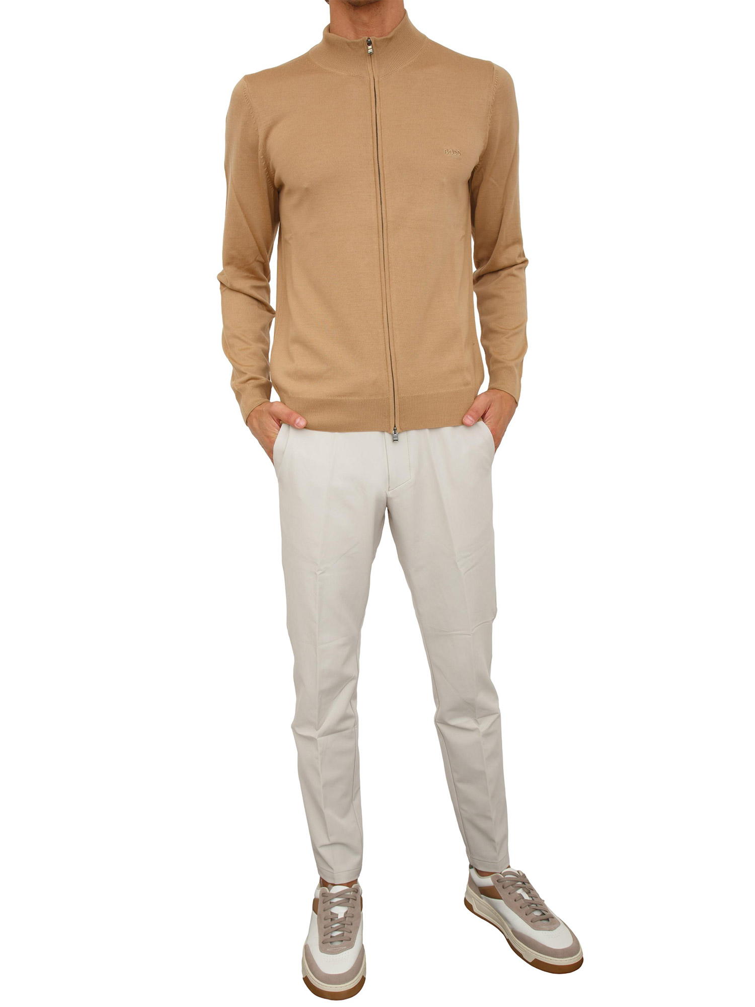 Crea look a strati con questo cardigan BOSS Uomo realizzato in morbida lana vergine con vestibilità regular fit. Zip a doppio cursore per uno stile versatile. Il modello è alto 1.90m e indossa la taglia M.