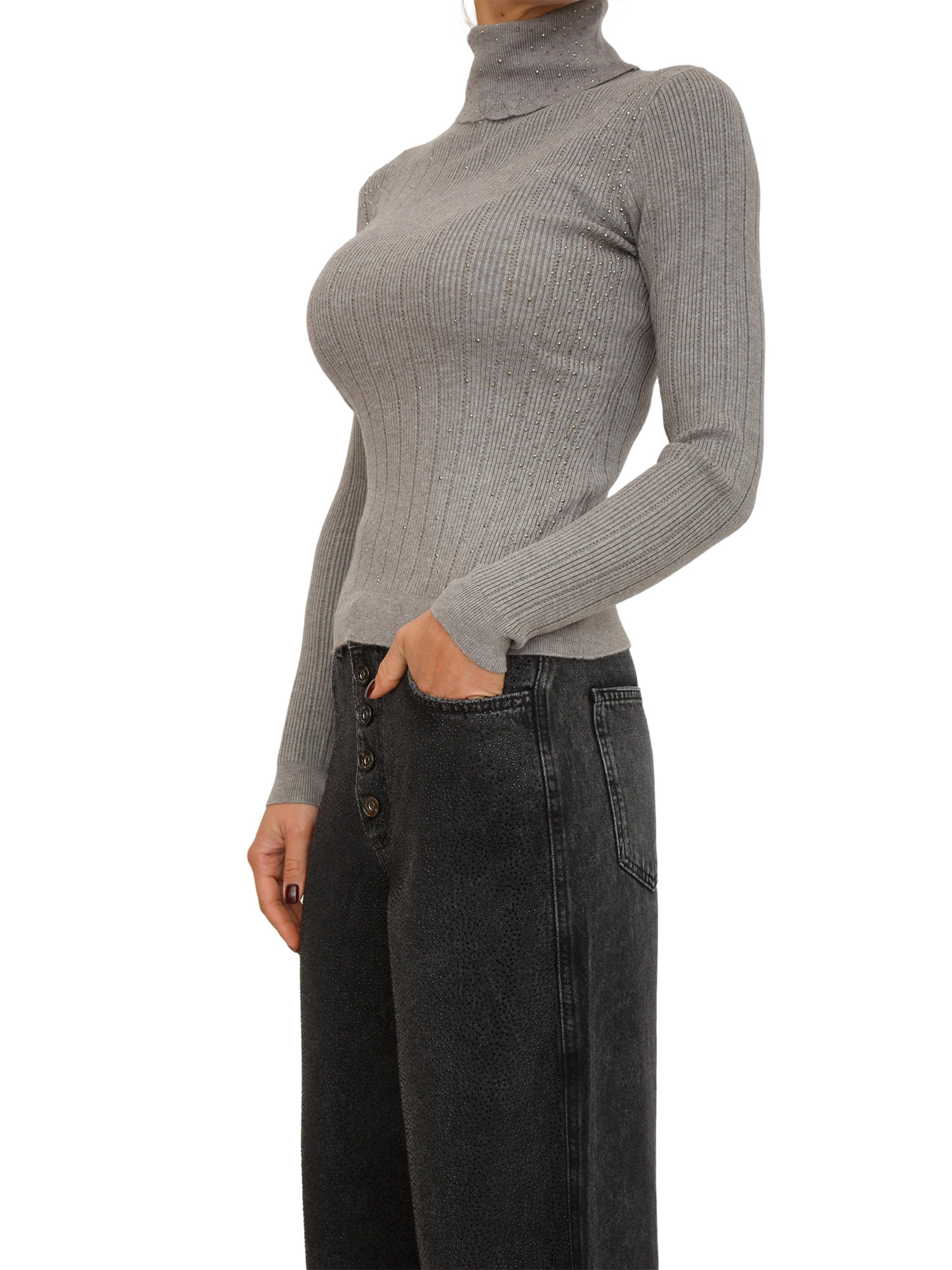Maglia dolcevita grigia Fracomina in viscosa con strass