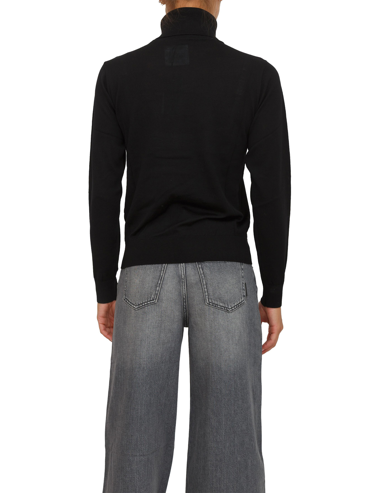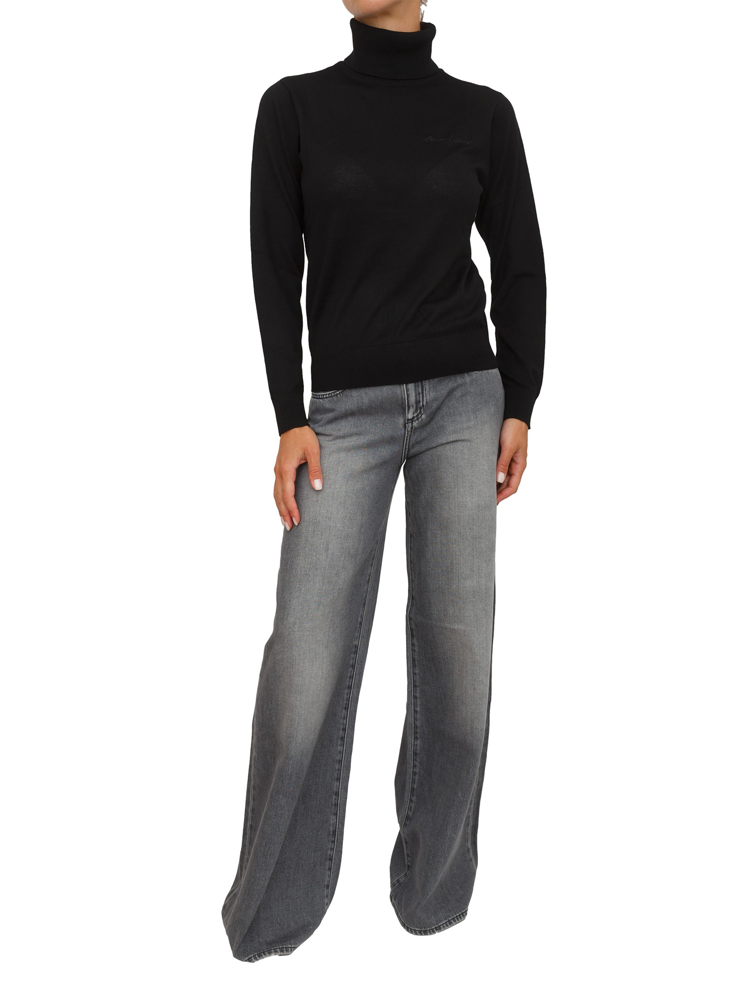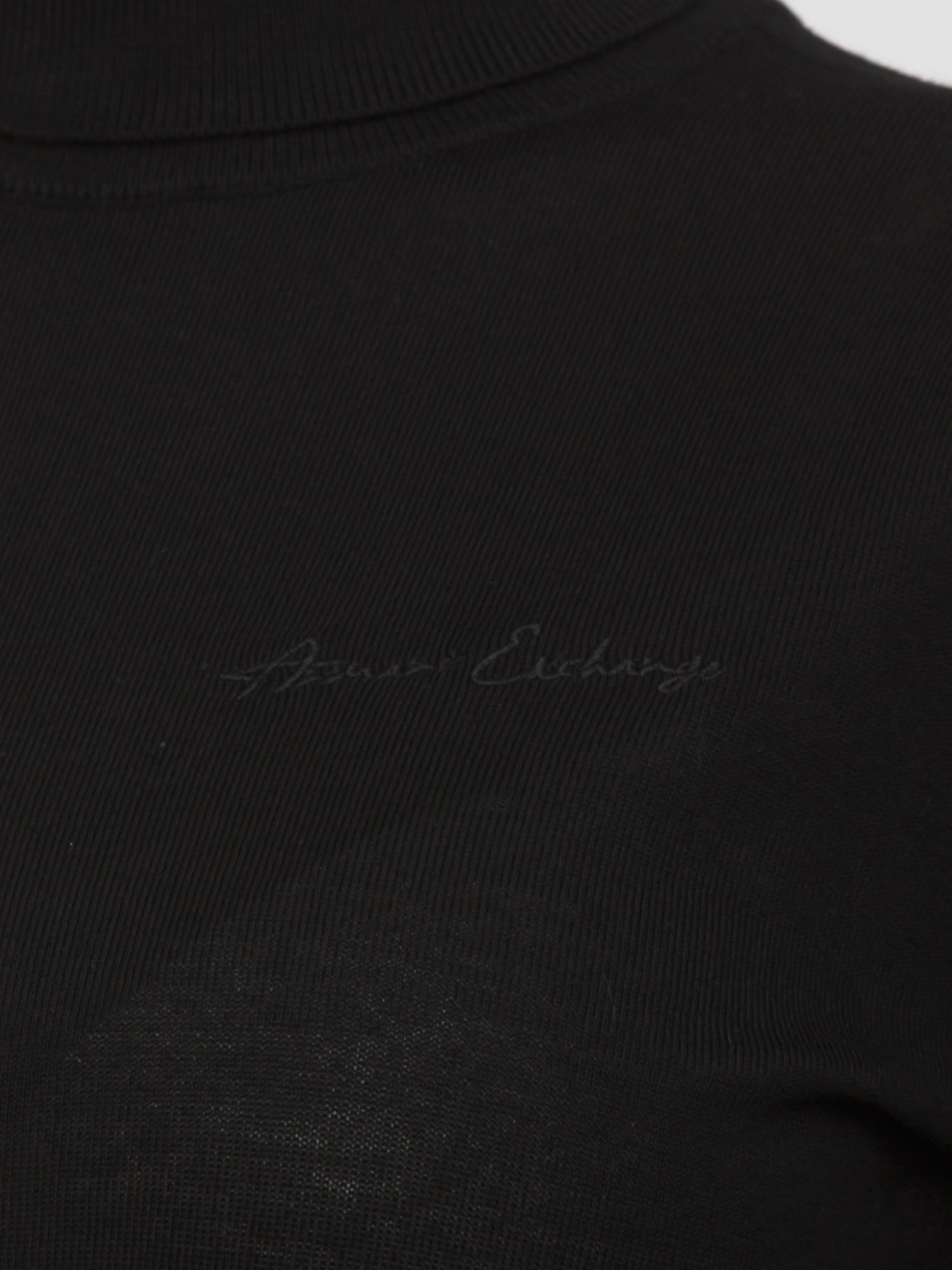 Maglia donna Armani Exchange in misto viscosa nera con collo alto e logo ricamato