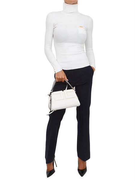 Maglia a costine Elisabetta Franchi in lyocell e seta avorio con taschino e collo alto