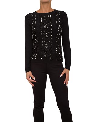 Maglia regular con punto treccia, applicazioni gioiello, girocollo, e con maniche lunghe.