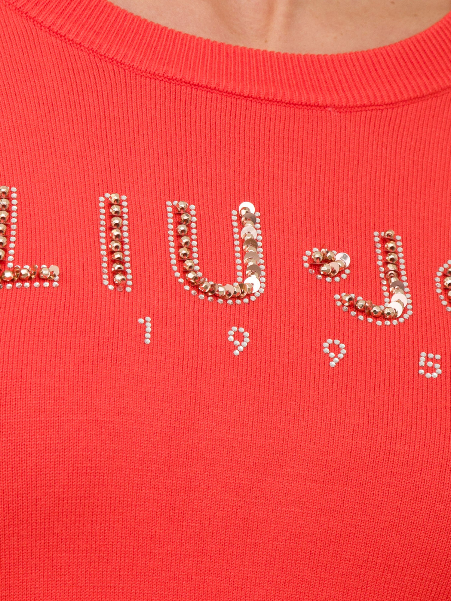 Maglia Liu Jo in misto viscosa dal design essenziale e chic, perfetta per aggiungere un tocco sofisticato al tuo look quotidiano. Il logo con strass sul davanti dona luminosità e carattere, esaltando la femminilità con discreta eleganza. Il taglio girocollo, le maniche lunghe ei bordi a costine assicurano una vestibilità confortevole e avvolgente. Un capo versatile e di classe.