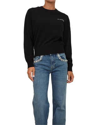 Maglia Pinko a girocollo e maniche lunghe realizzata in pregiato misto lana e cashmere. L'inimitabile stile del brand viene espresso al massimo in questo capo, arricchito dal maxi logo Love Birds sul retro e dal logo lettering PINKO a contrasto sul davanti, lato cuore. La modella è alta 1.72 e indossa la taglia S.
