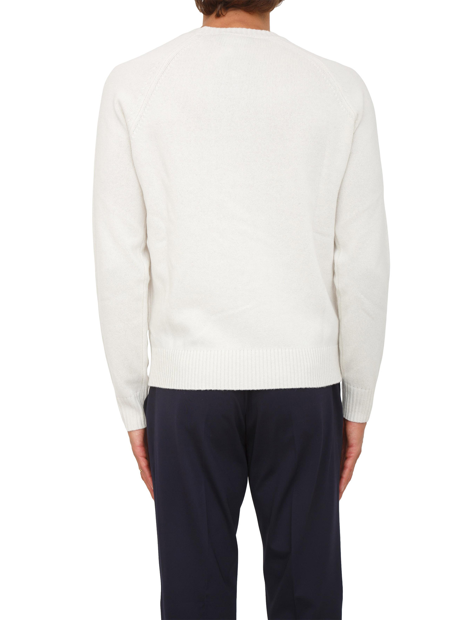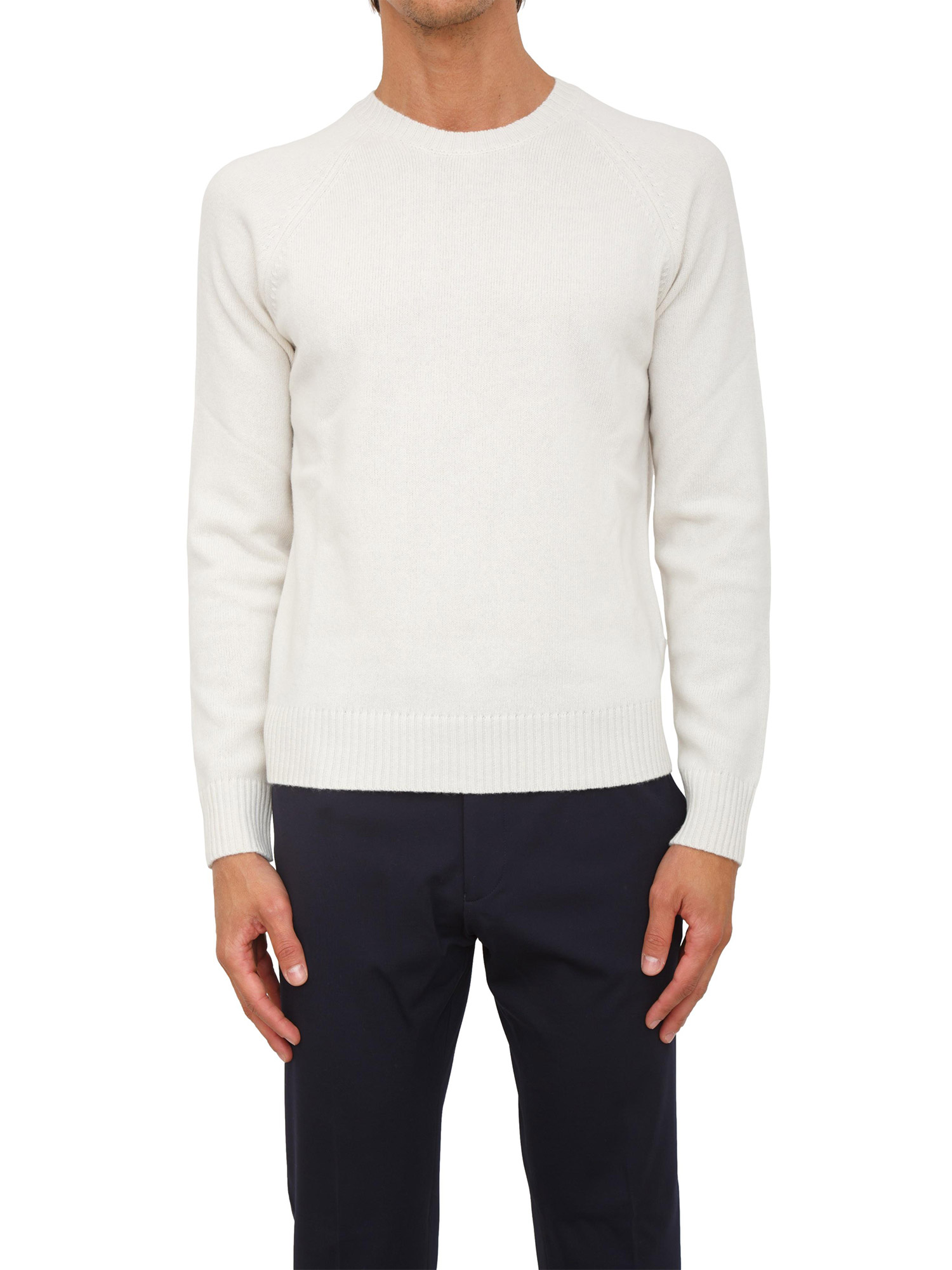 Maglia girocollo Aiace Galassi in lana e cashmere bianco panna