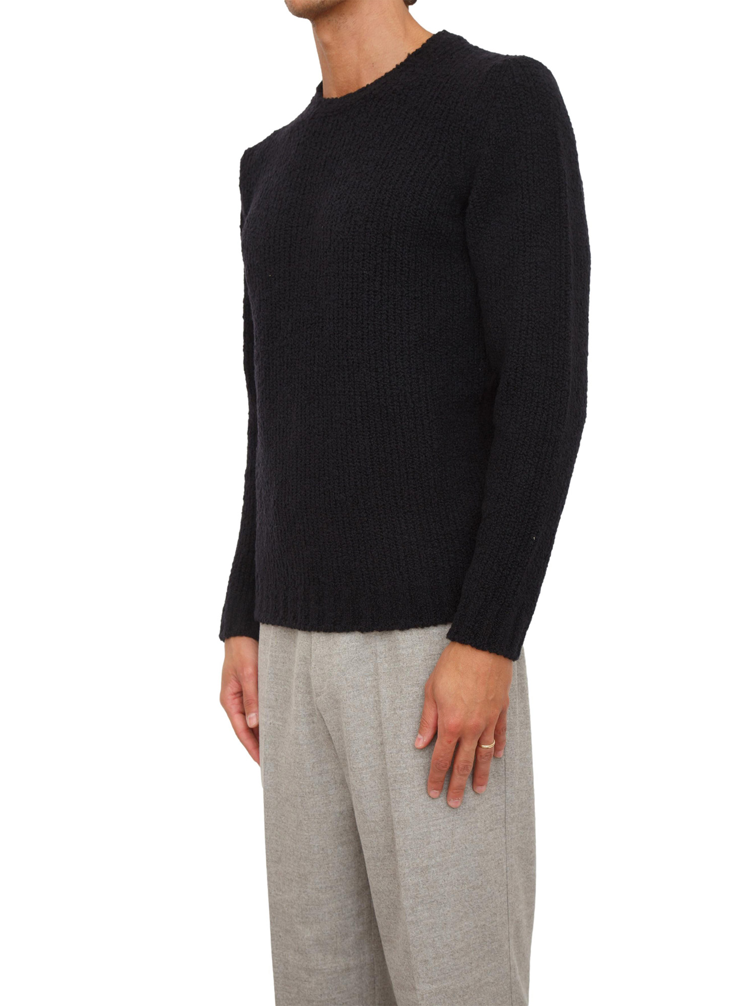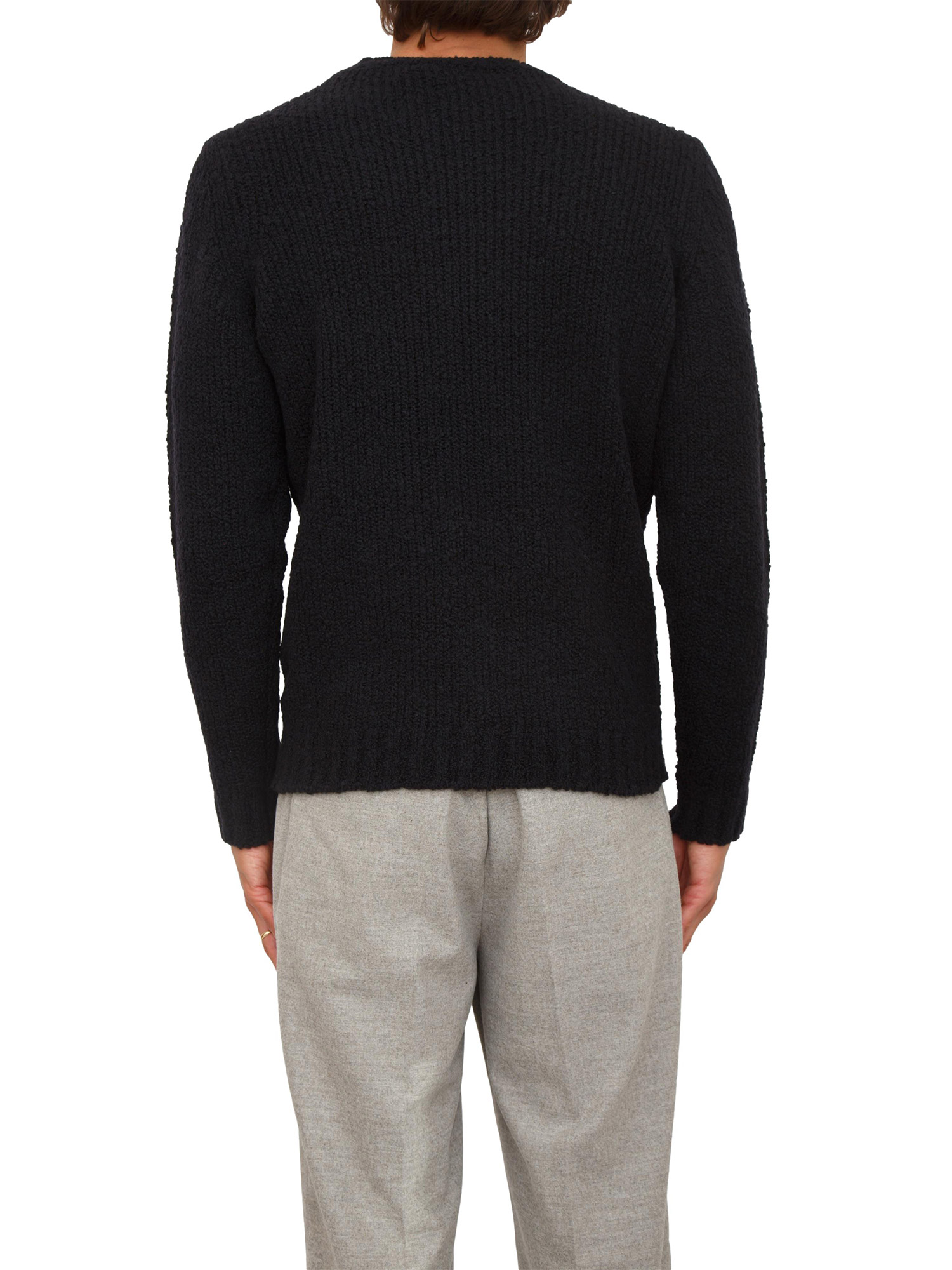 Maglia girocollo Aiace Galassi in misto lana blu con lavorazione effetto bouclÉ