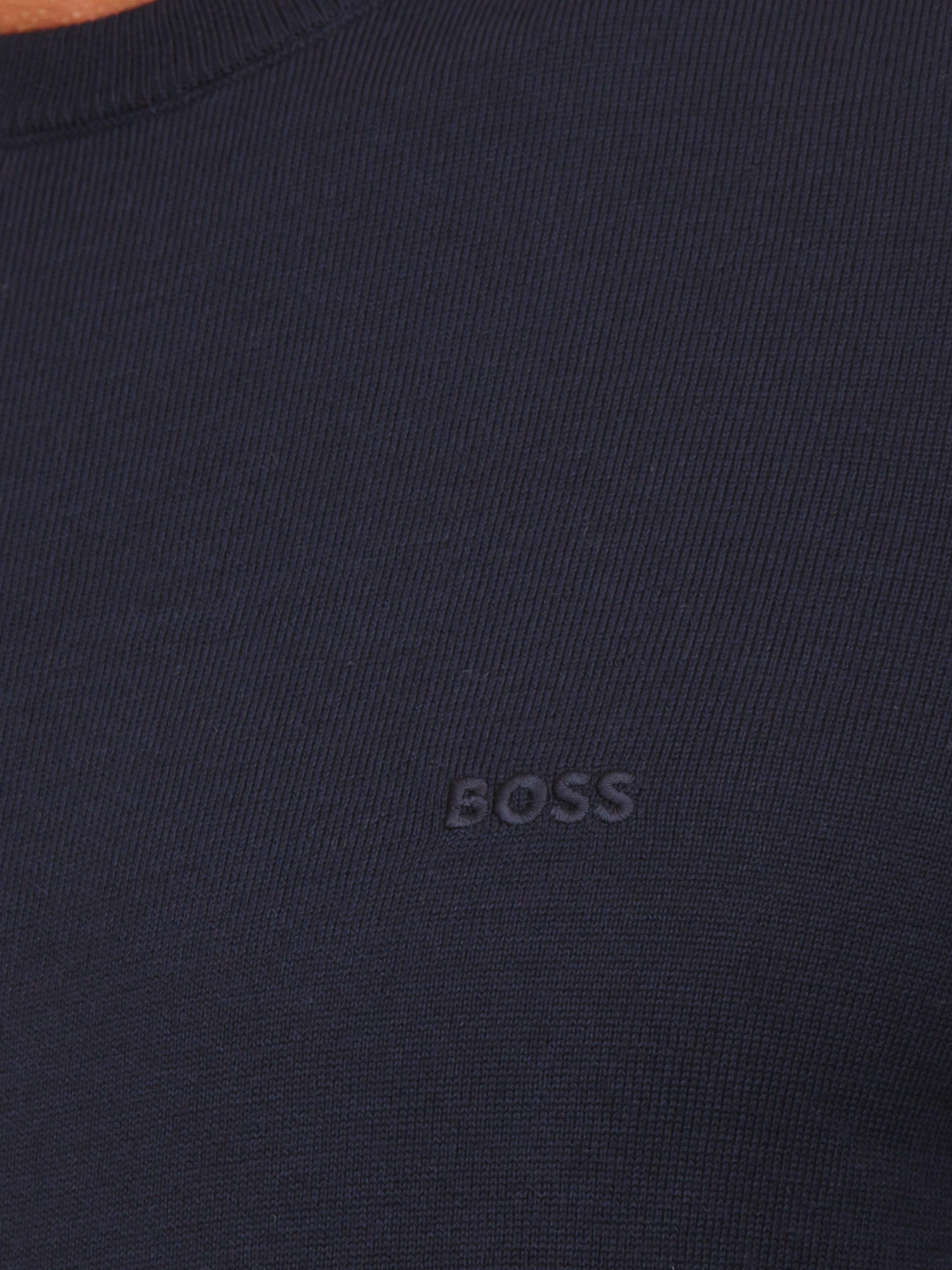 Matglia uomo girocollo Boss realizzata in lana vergine termoregolante con regular fit. Questo capo è un must per ogni guardaroba maschile. Logo ricamato e polsini a costine. Perfetto per ogni look casual elegante. Il modello è alto 1.90m e indossa la taglia M.