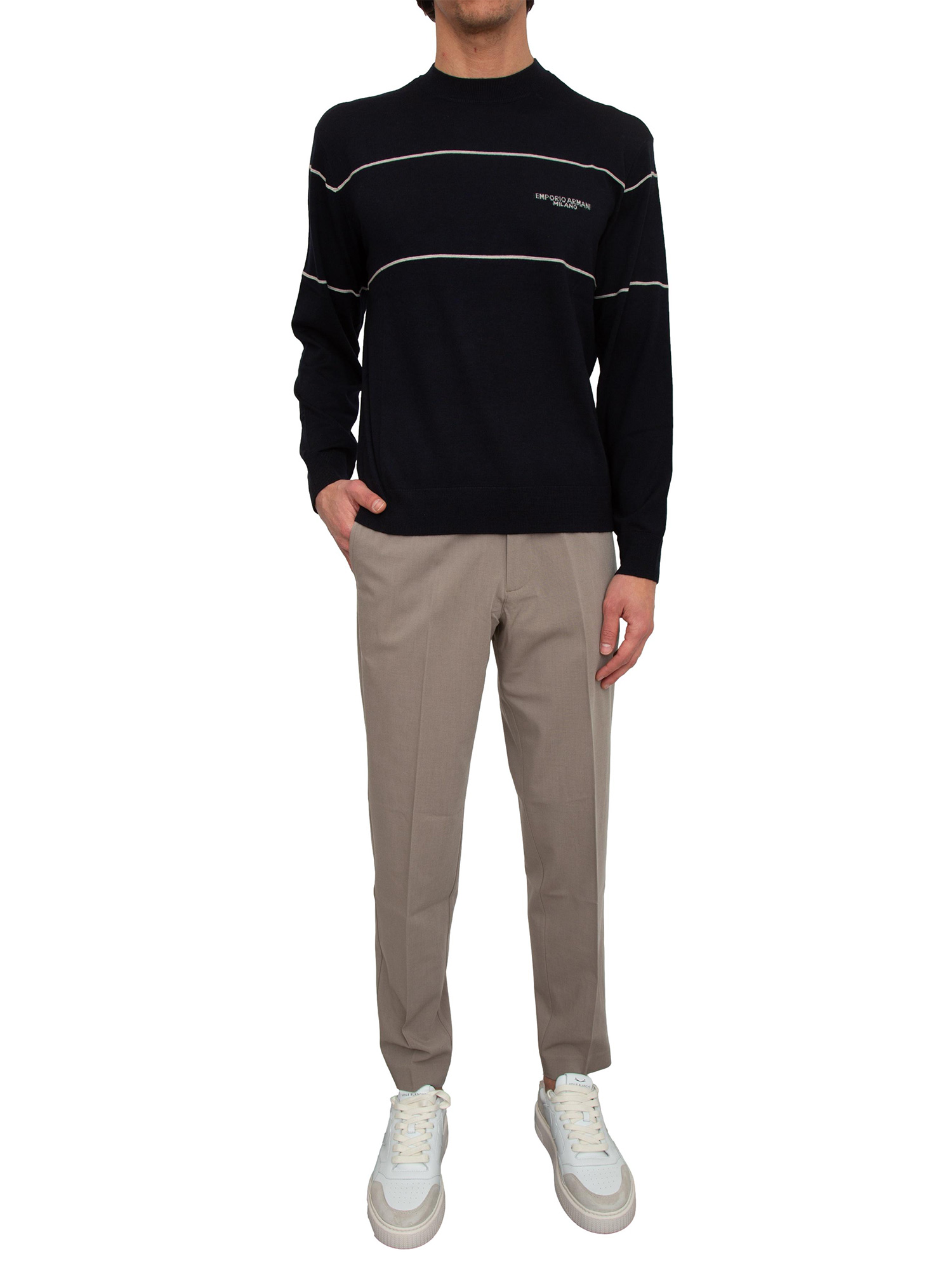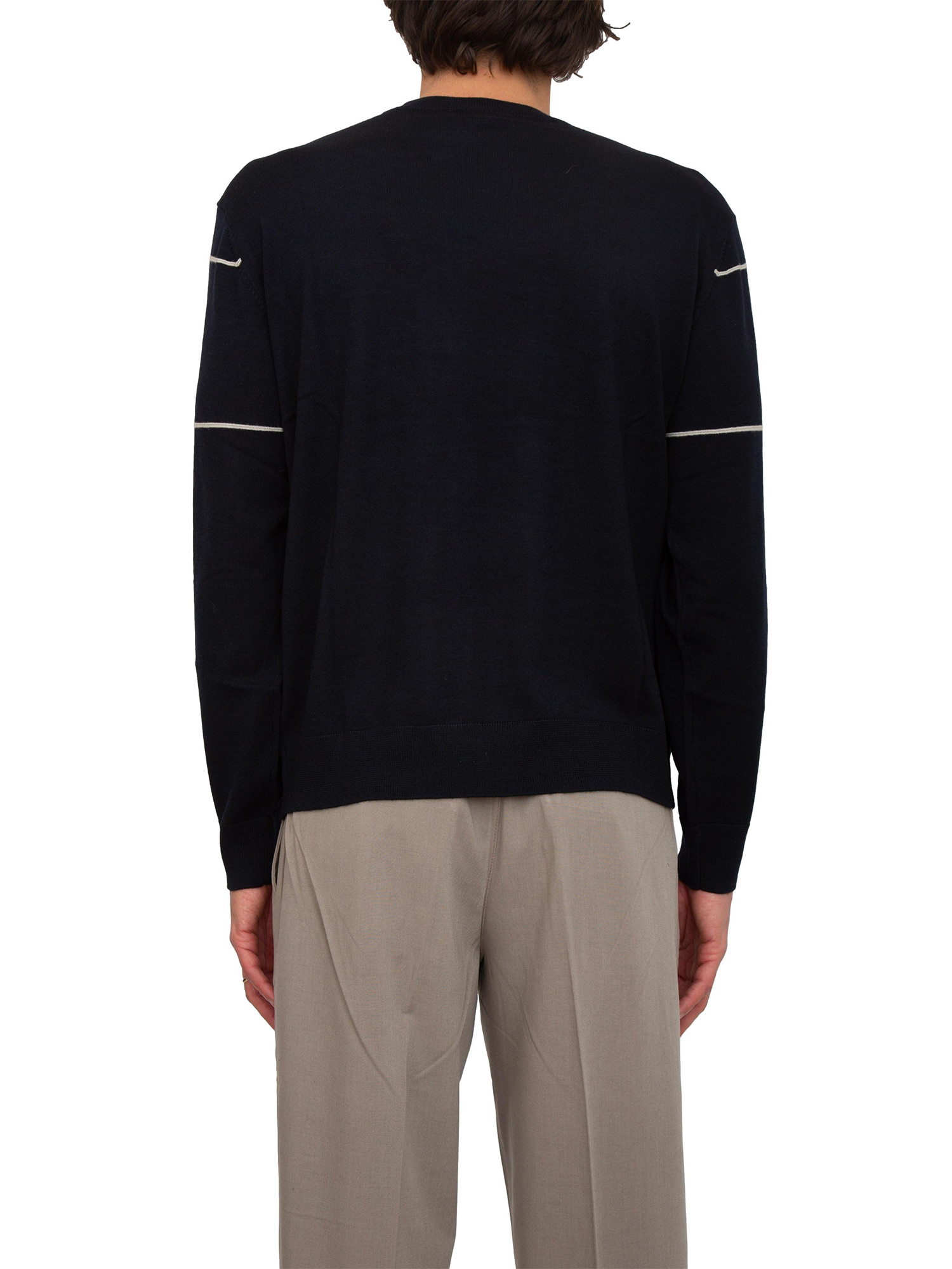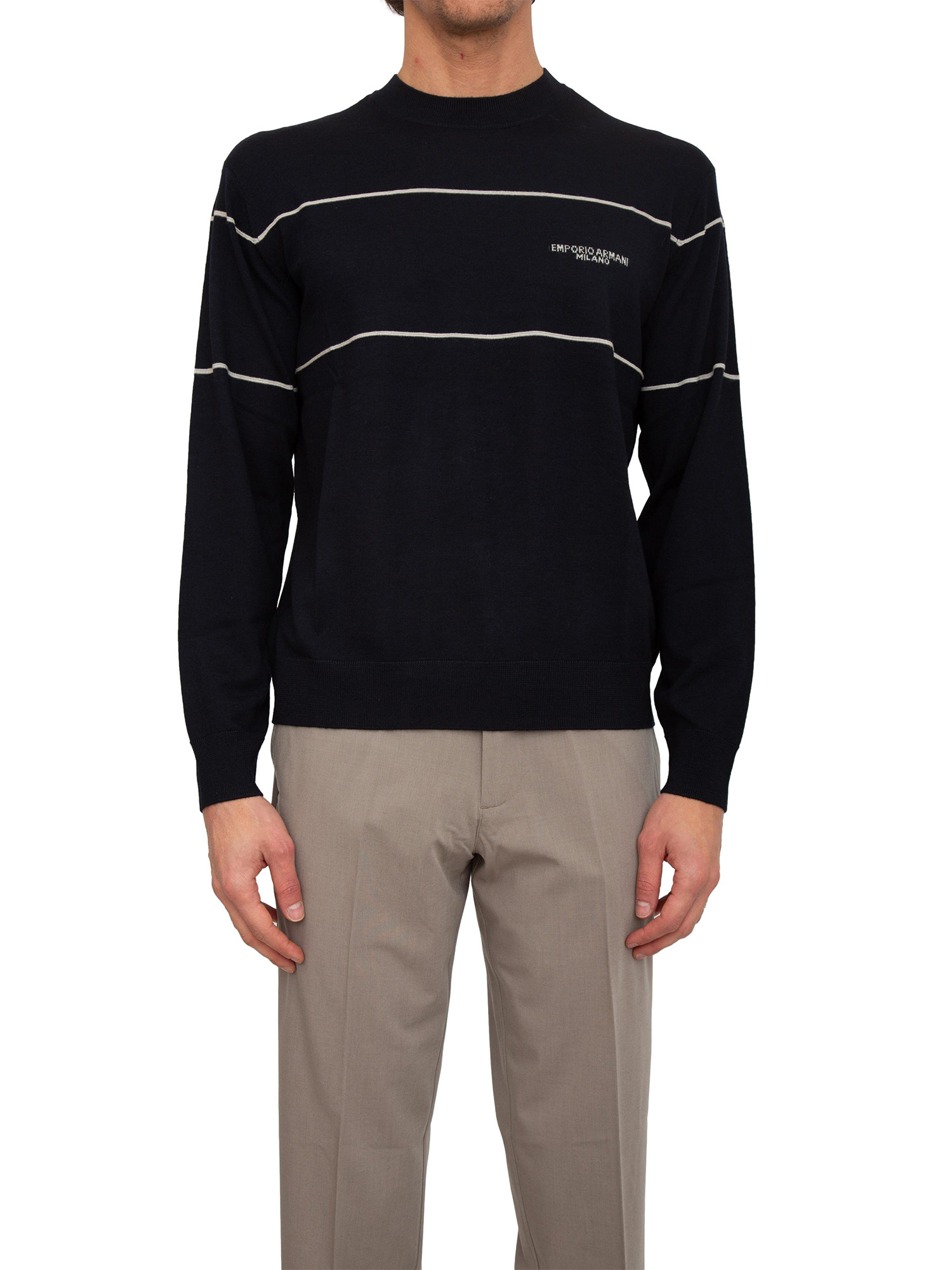 Maglia girocollo Emporio Armani in pura lana vergine blu con contrasti