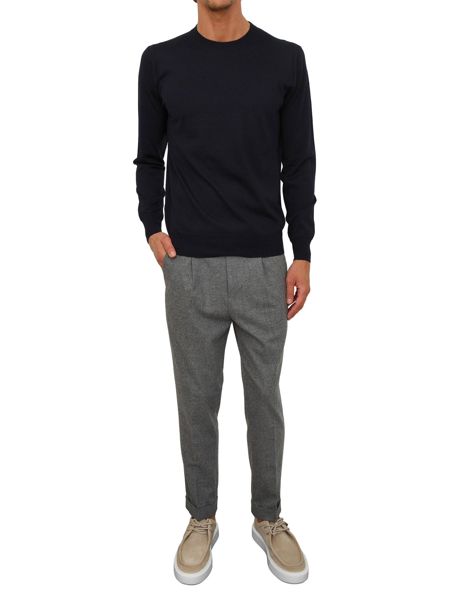 Maglia girocollo Paolo Pecora realizzata in 100% lana merino extrafine rasata. La lavorazione fine assicura morbidezza e comfort sulla pelle. Un capo minimal e versatile, ideale per completare con eleganza i look quotidiani. Il modello è alto 1.90m e indossa la taglia L.