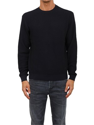 Maglia girocollo uomo Emporio Armani realizzato in pura lana vergine dalla texture particolarmente materica, percorso da pattern a rilievo a lavorazione jacquard che crea una naturale intersezione di motivi strutturati e ricercati all over. Il modello è alto 1.90m e indossa la taglia L.