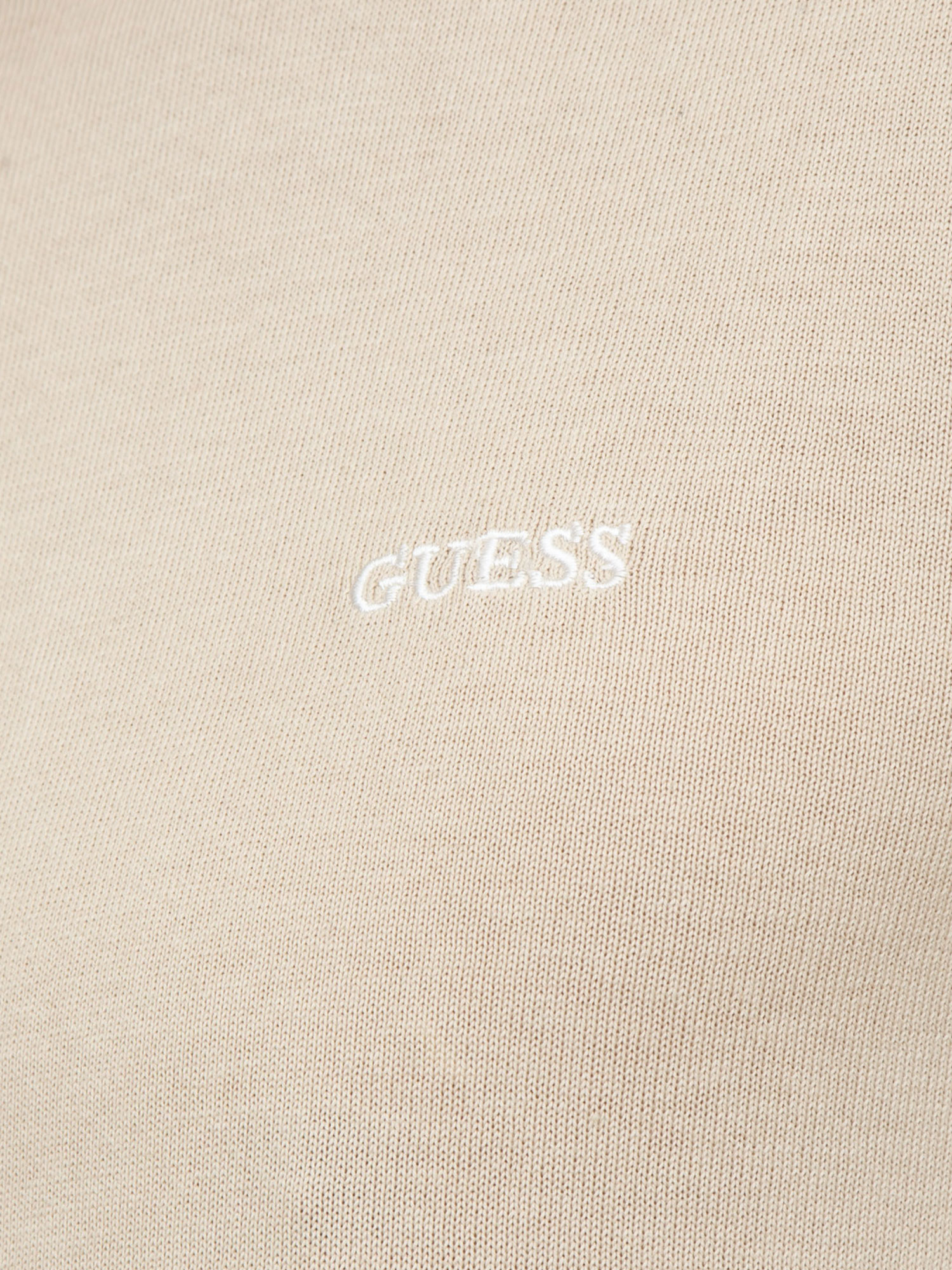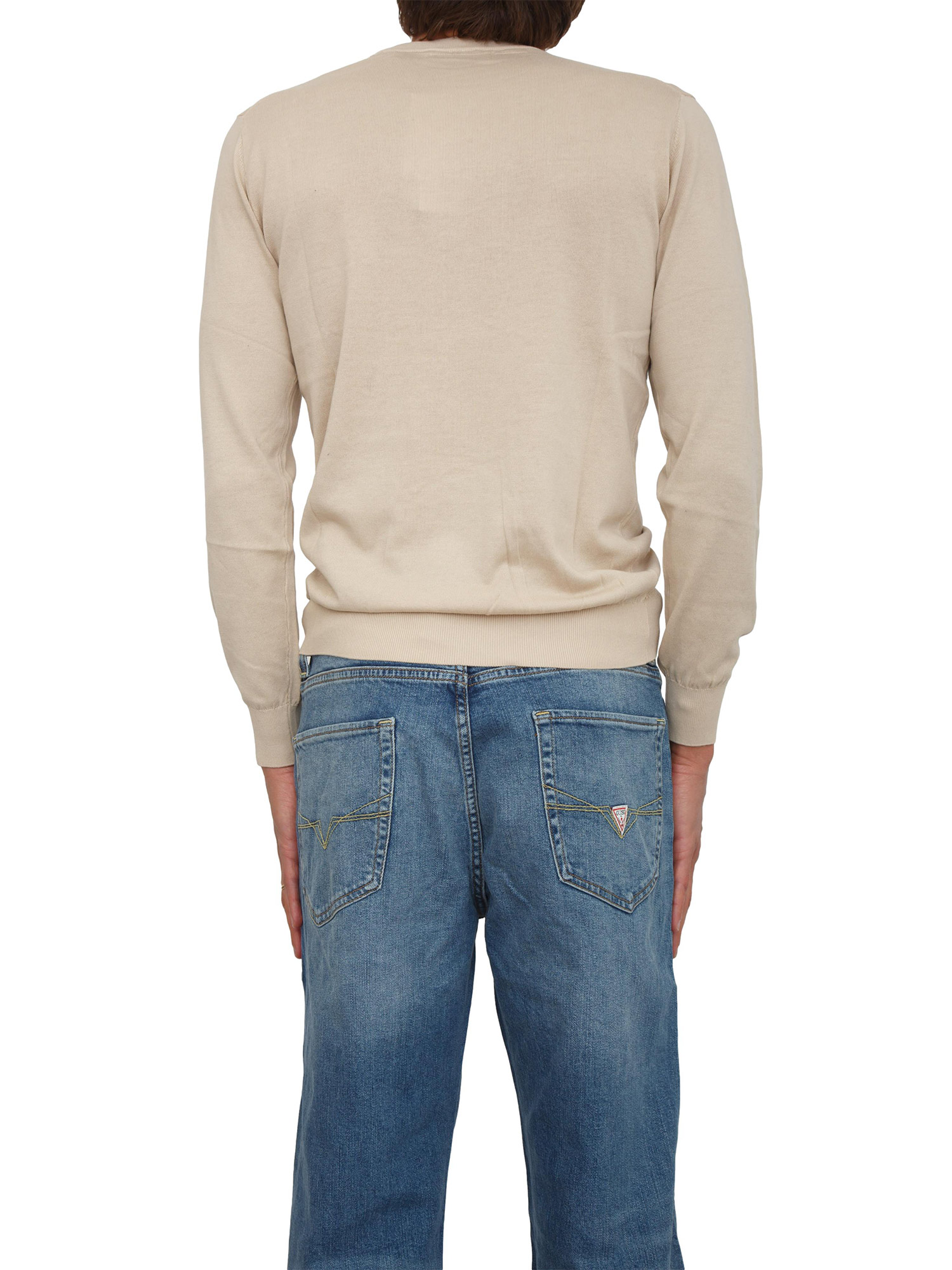 Maglia girocollo Guess Jeans uomo realizzata in misto seta/lana con manica lunga e logo sul petto. Collo, polsi e fondo a costine. Vestibilità regular. Il modello è alto 1.90m e indossa la taglia M.