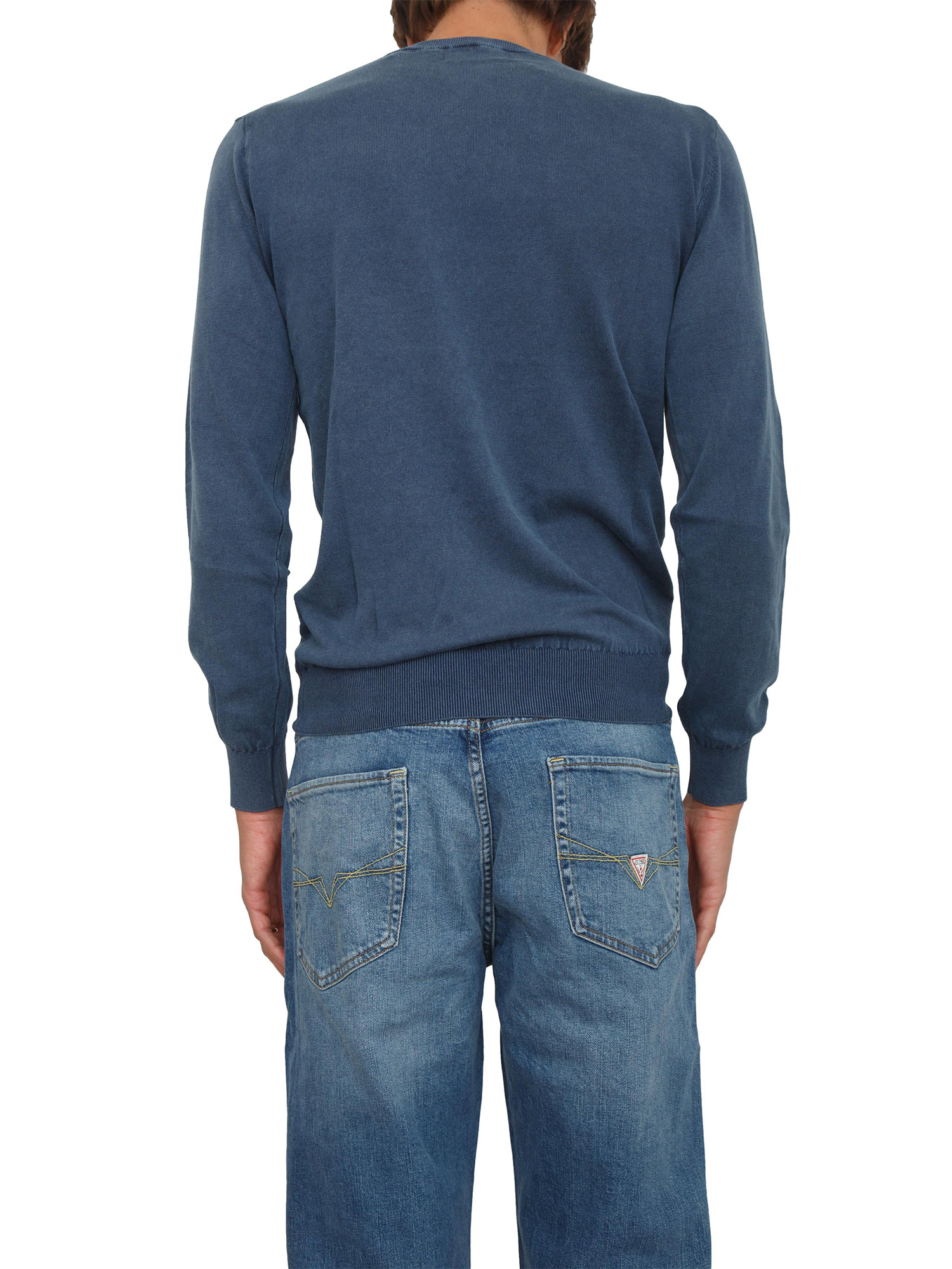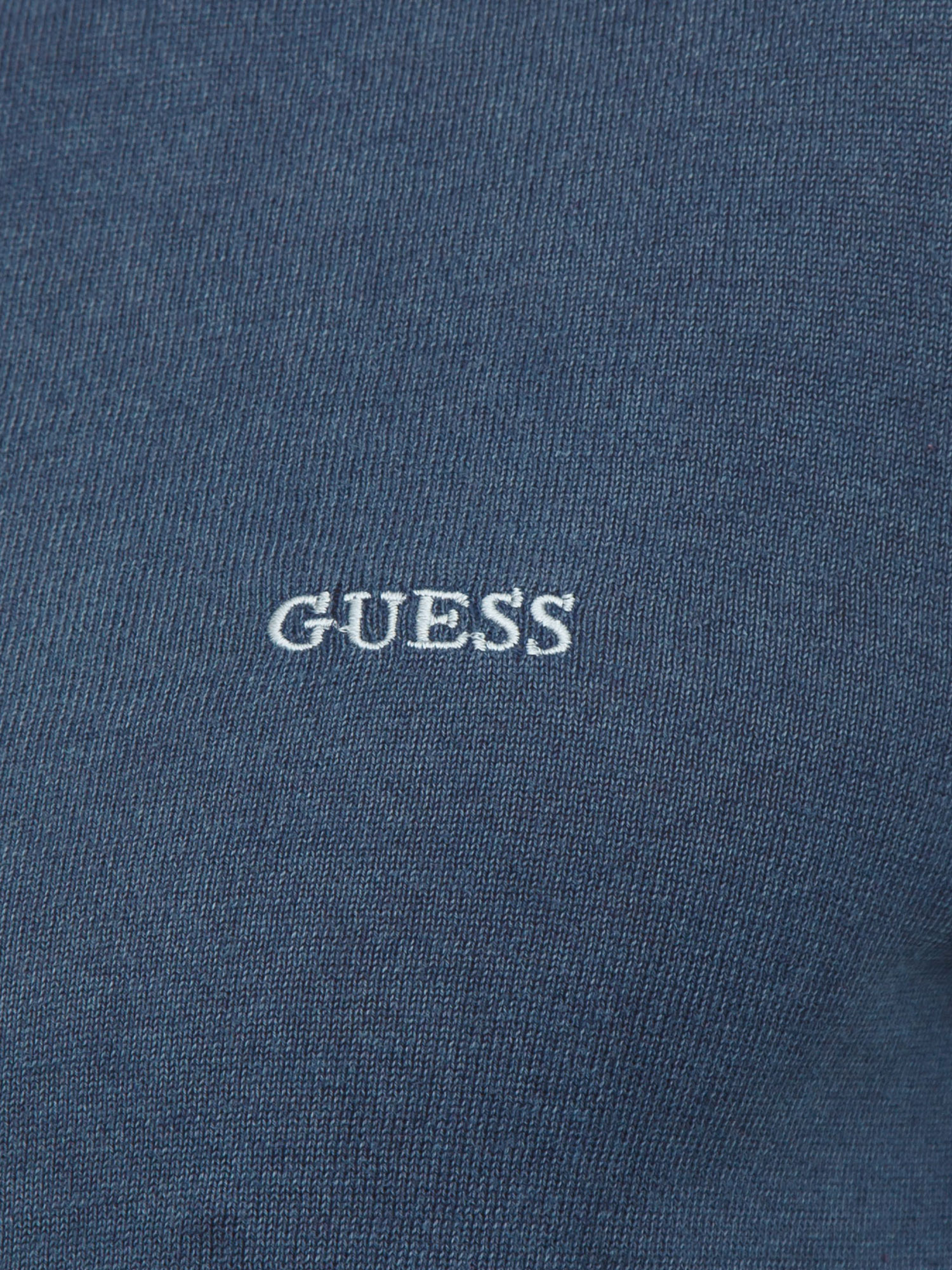 Maglia girocollo Guess Jeans uomo realizzata in misto seta/lana con manica lunga e logo sul petto. Collo, polsi e fondo a costine. Vestibilità regular. Il modello è alto 1.90m e indossa la taglia M.