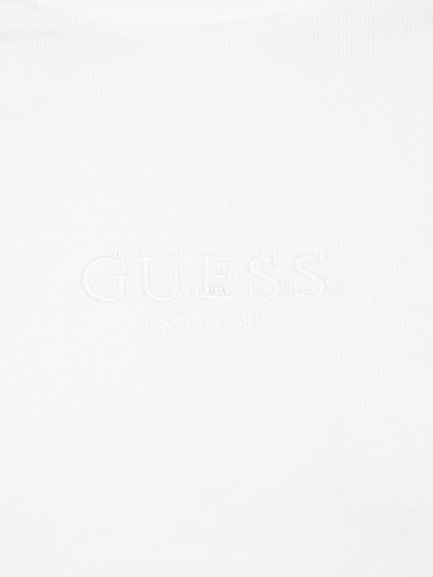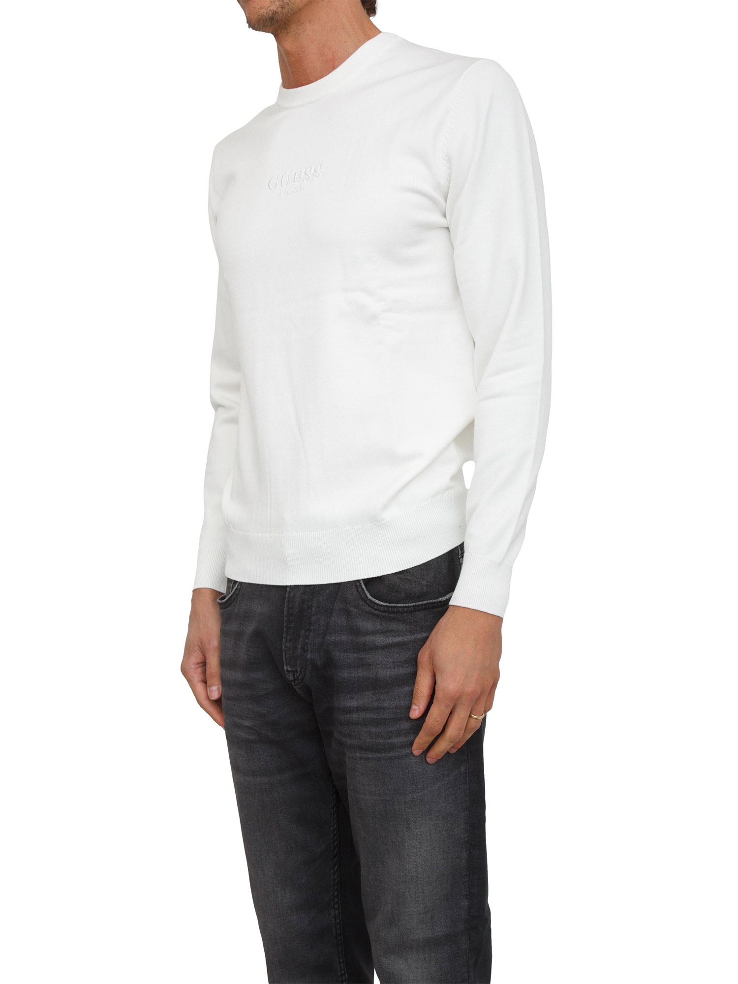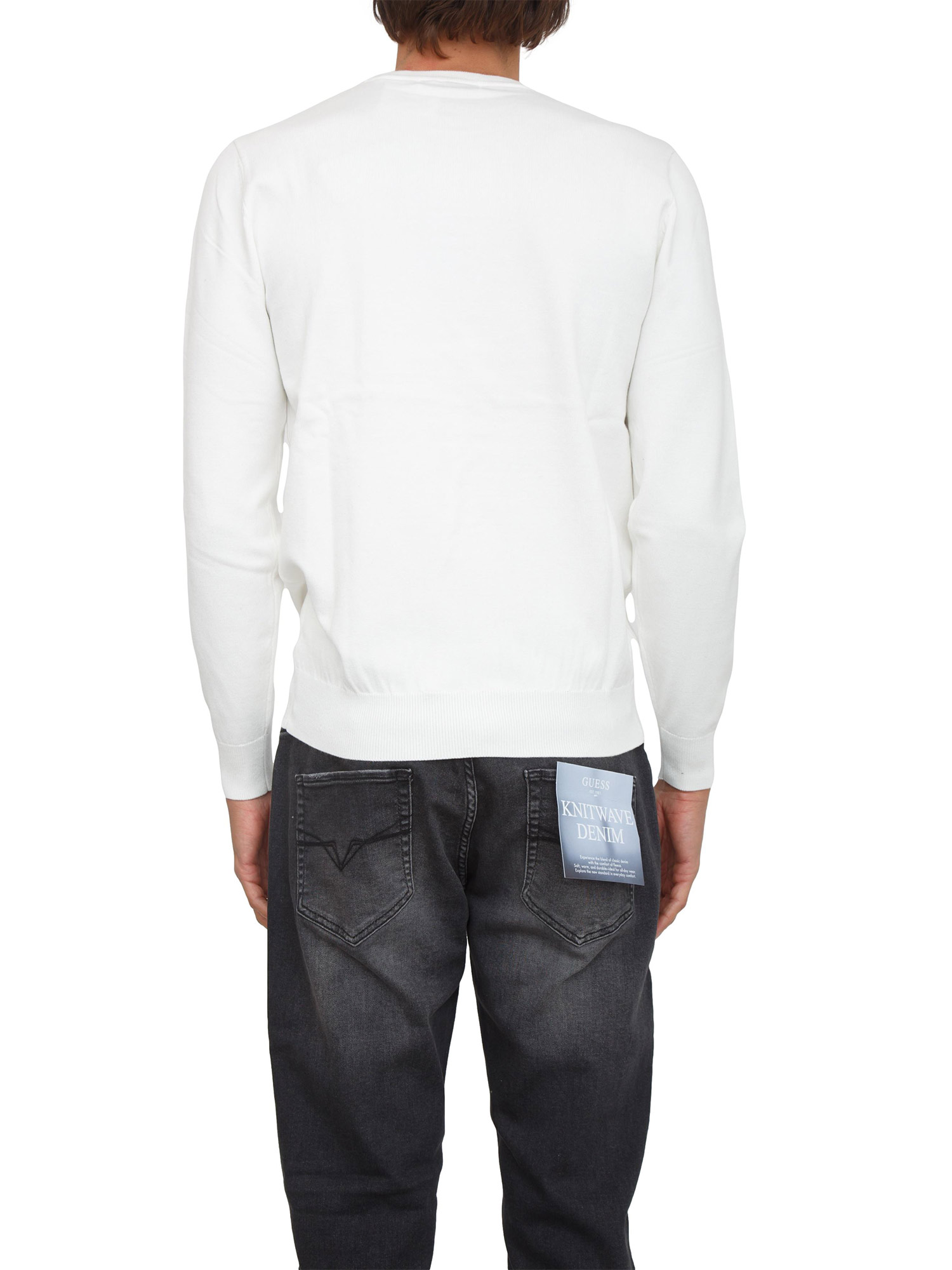 Maglia girocollo Guess Jeans realizzata in misto cotone/modal con vestibilità regular. Scritta con logo a sbalzo sul davanti e collo, polsi e orlo a costine. Essenziale ma raffinata. Il modello è alto 1.90m e indossa la taglia M.