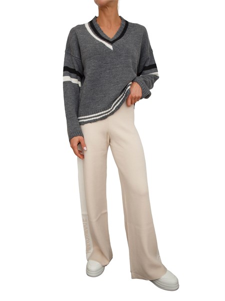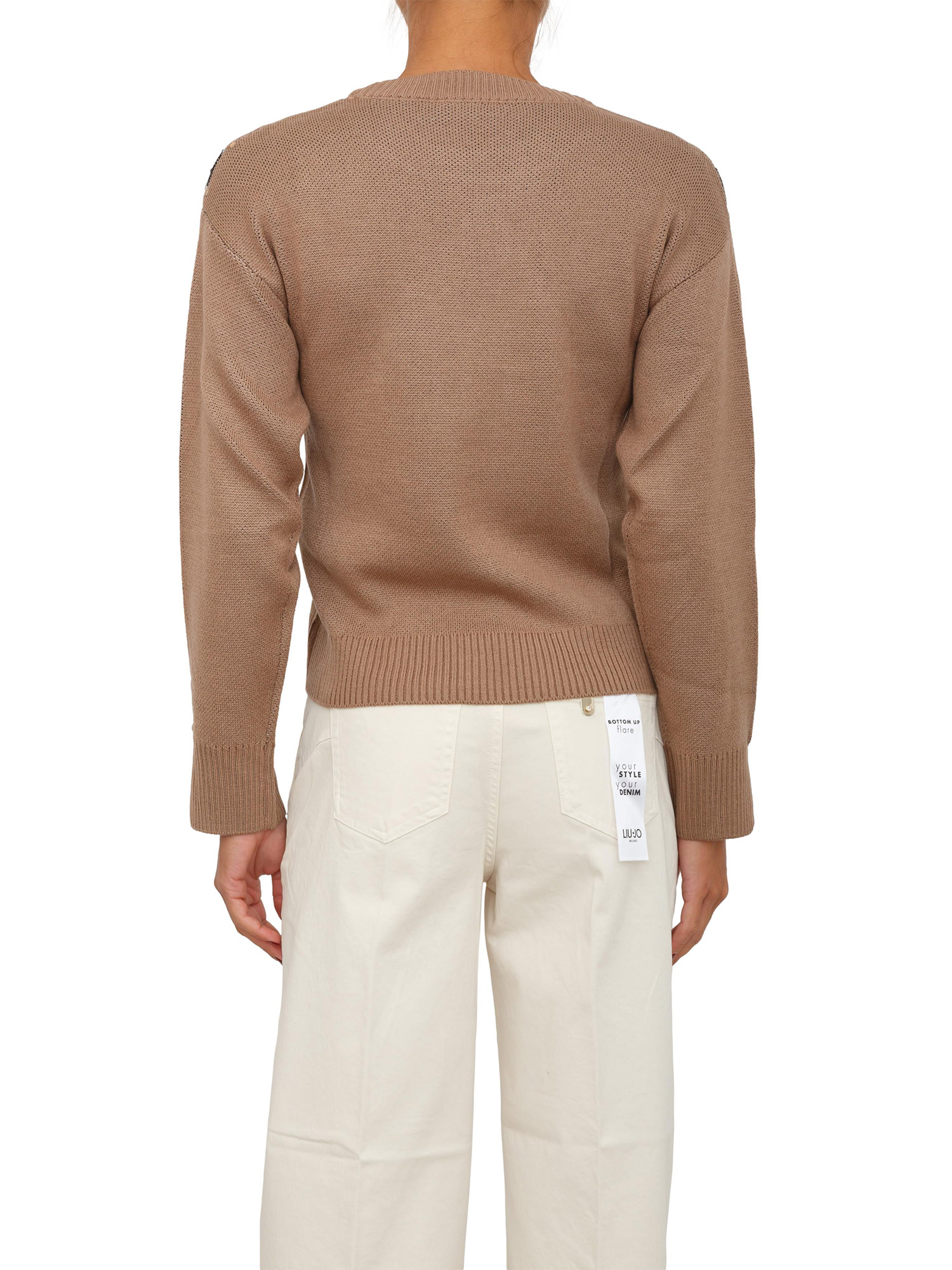 Maglia Liu Jo donna in lana beige con logo jacquard strass e borchie