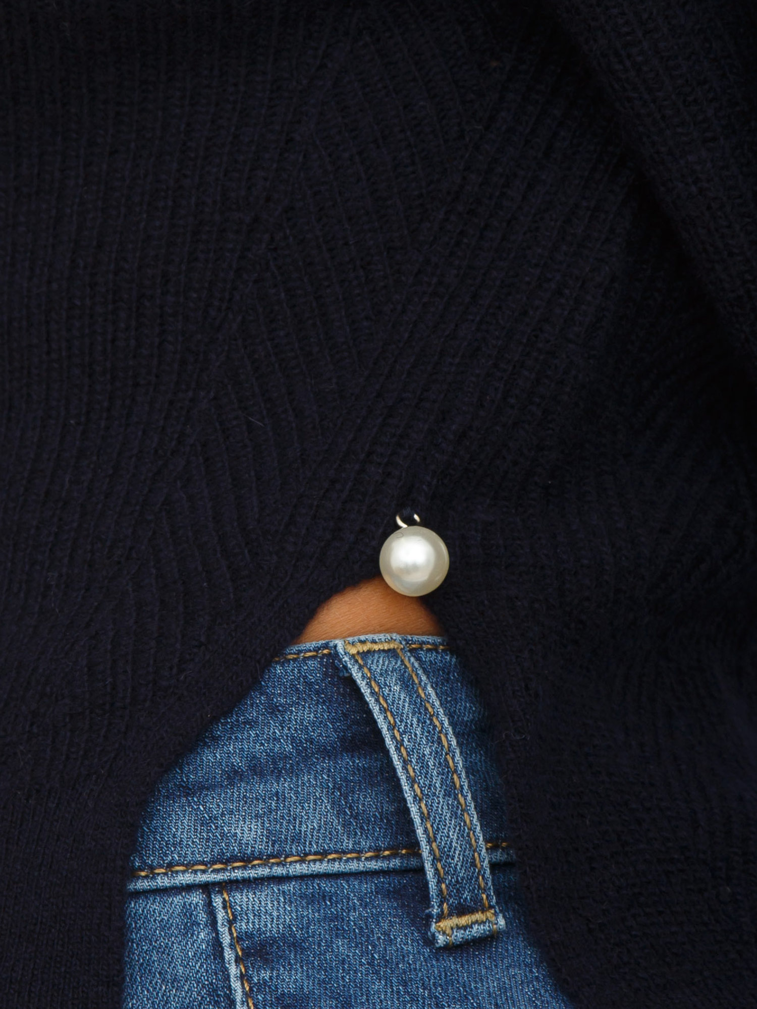 Maglia Liu Jo donna realizzata in lana e cashmere con scollo a barca e lavorazione a costine. Modello con spacchetti laterali e fondo con perla arricchito da logo in metallo sul retro. La modella è alta 1.72 e indossa la taglia XS.