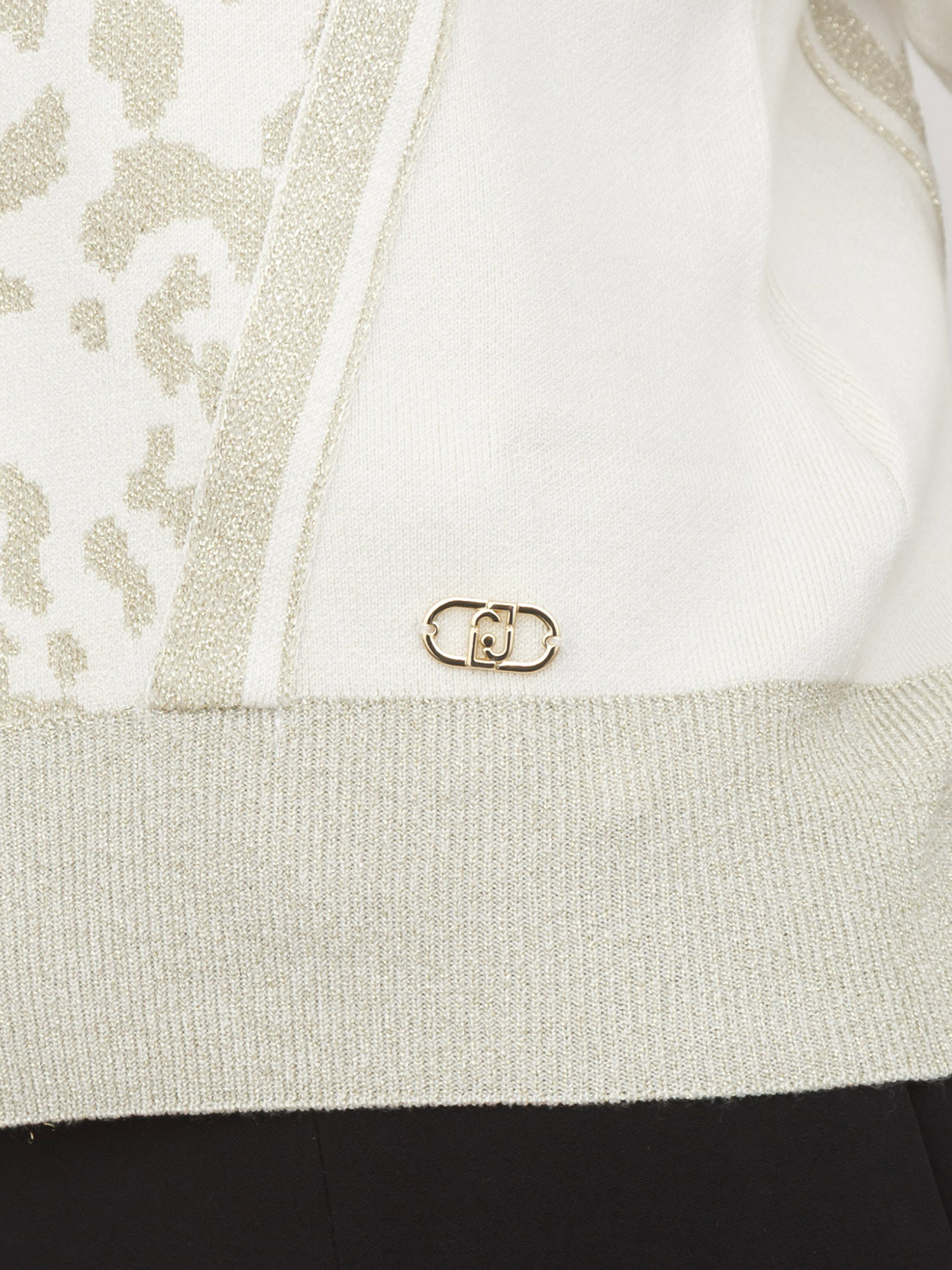 Maglia Liu Jo donna in viscosa e lurex avorio stampa animalier