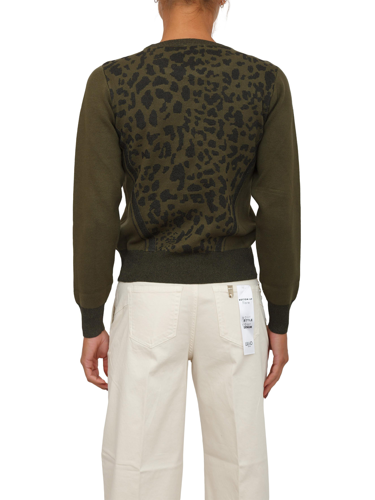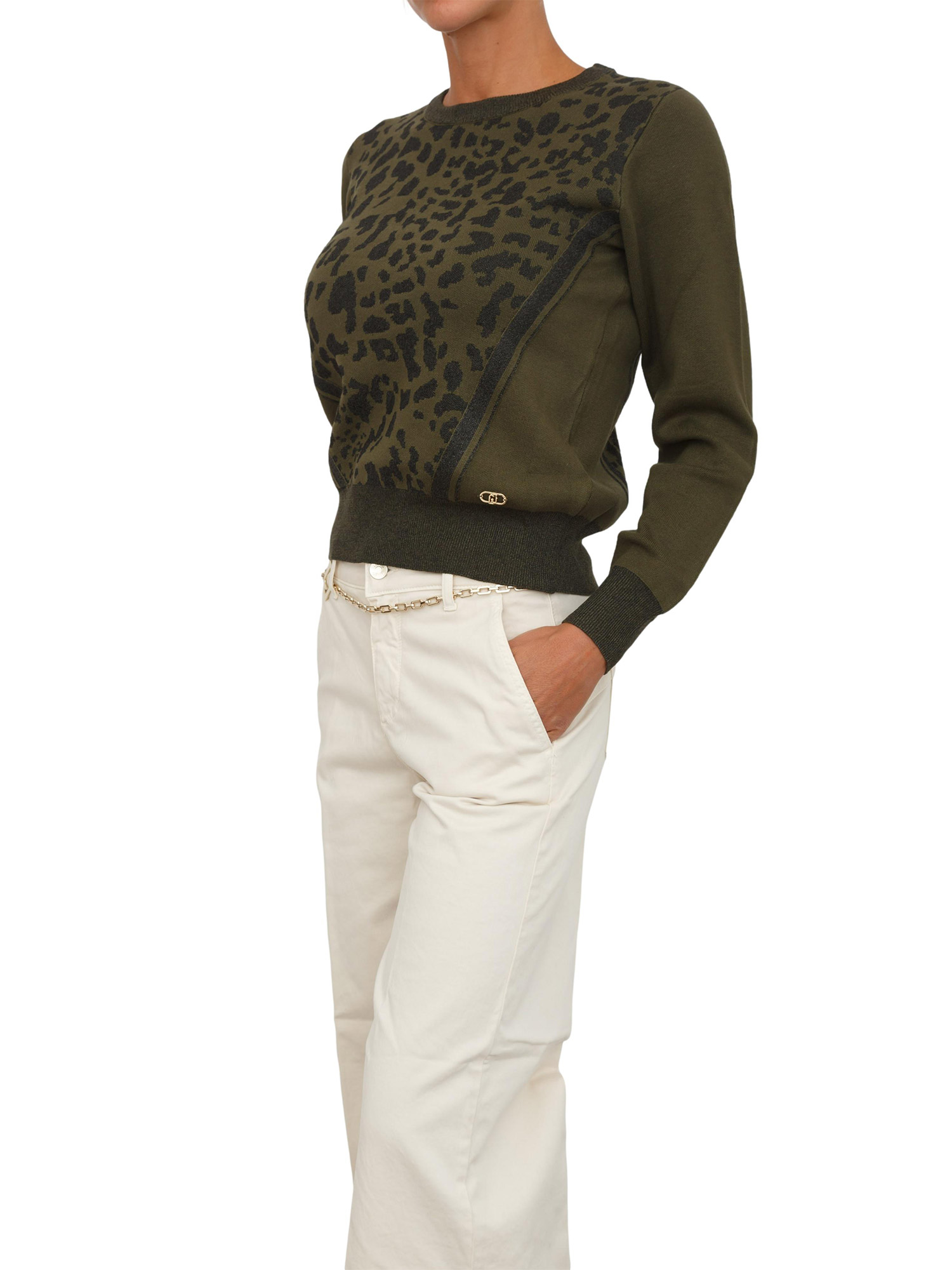 Maglia Liu Jo donna in viscosa e lurex verde stampa animalier