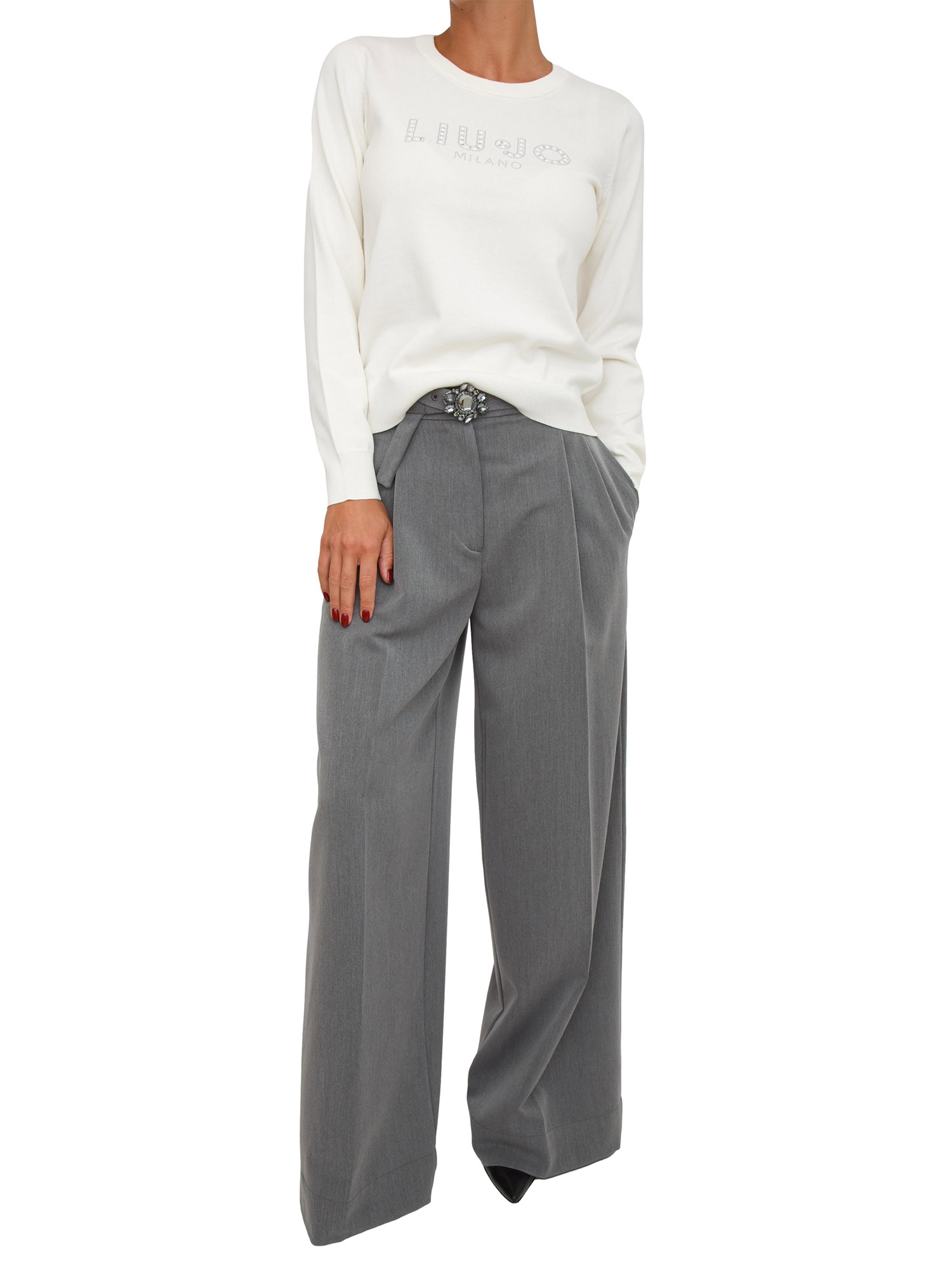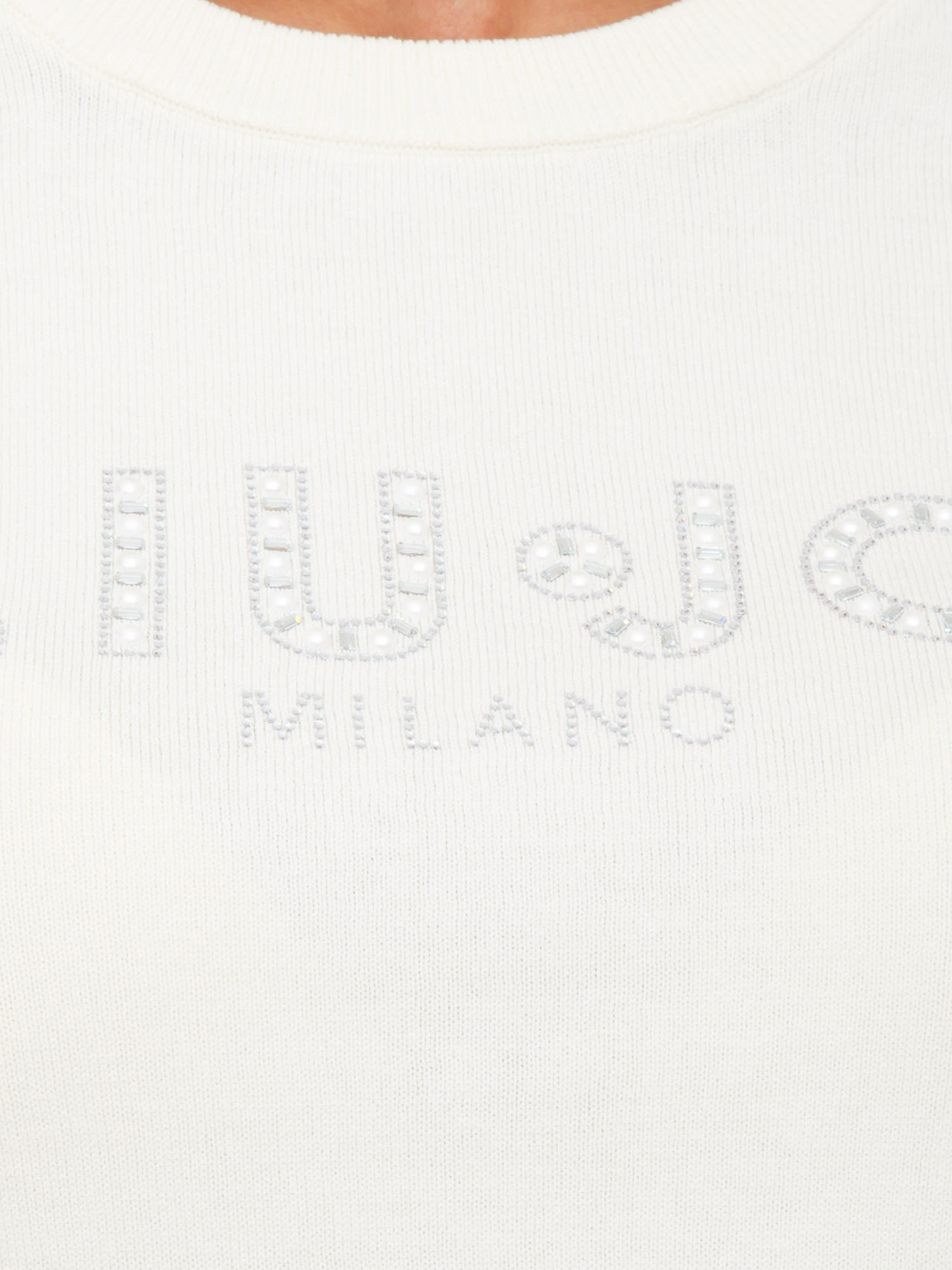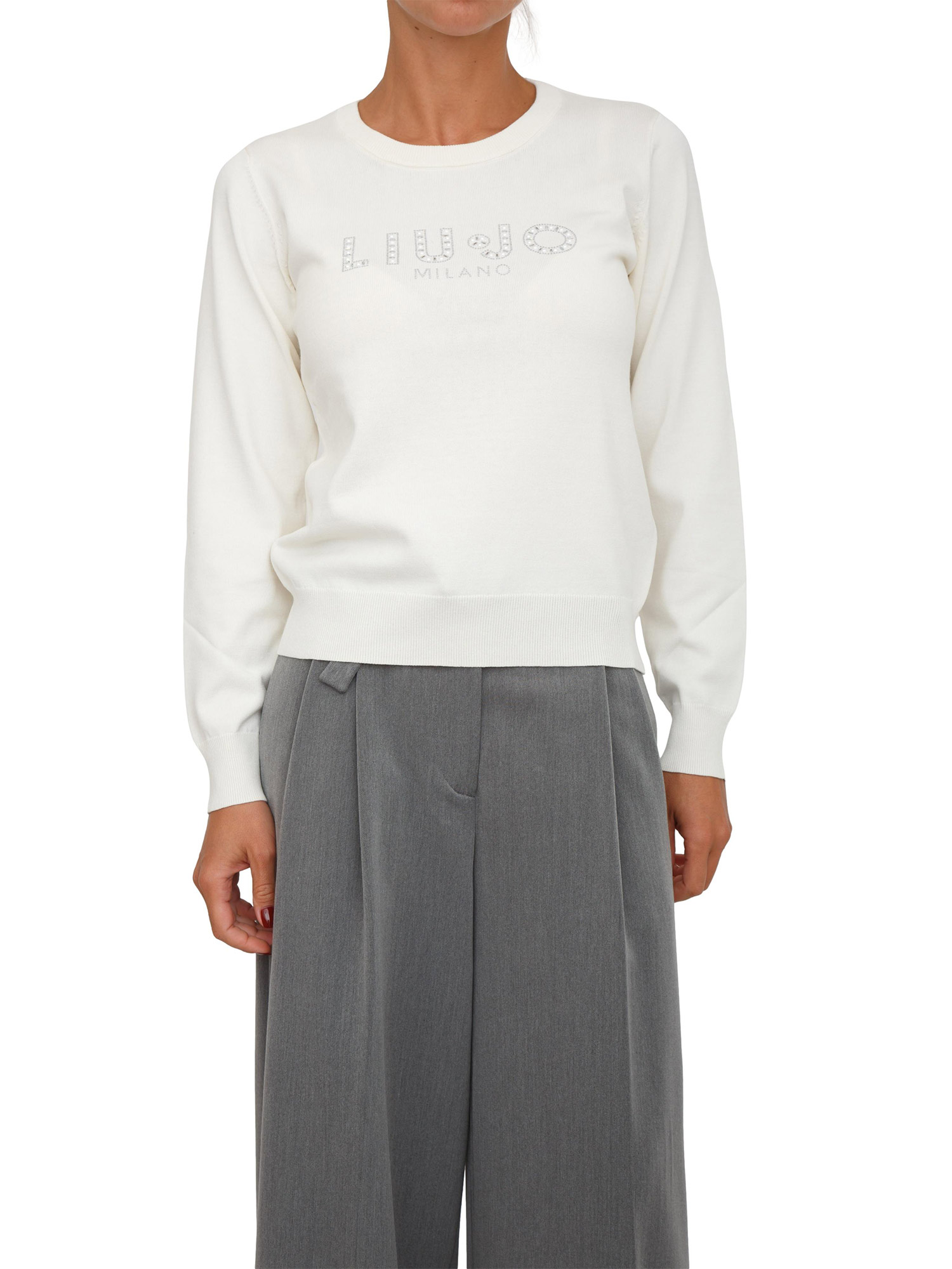 Maglia Liu Jo in misto viscosa avorio logo strass