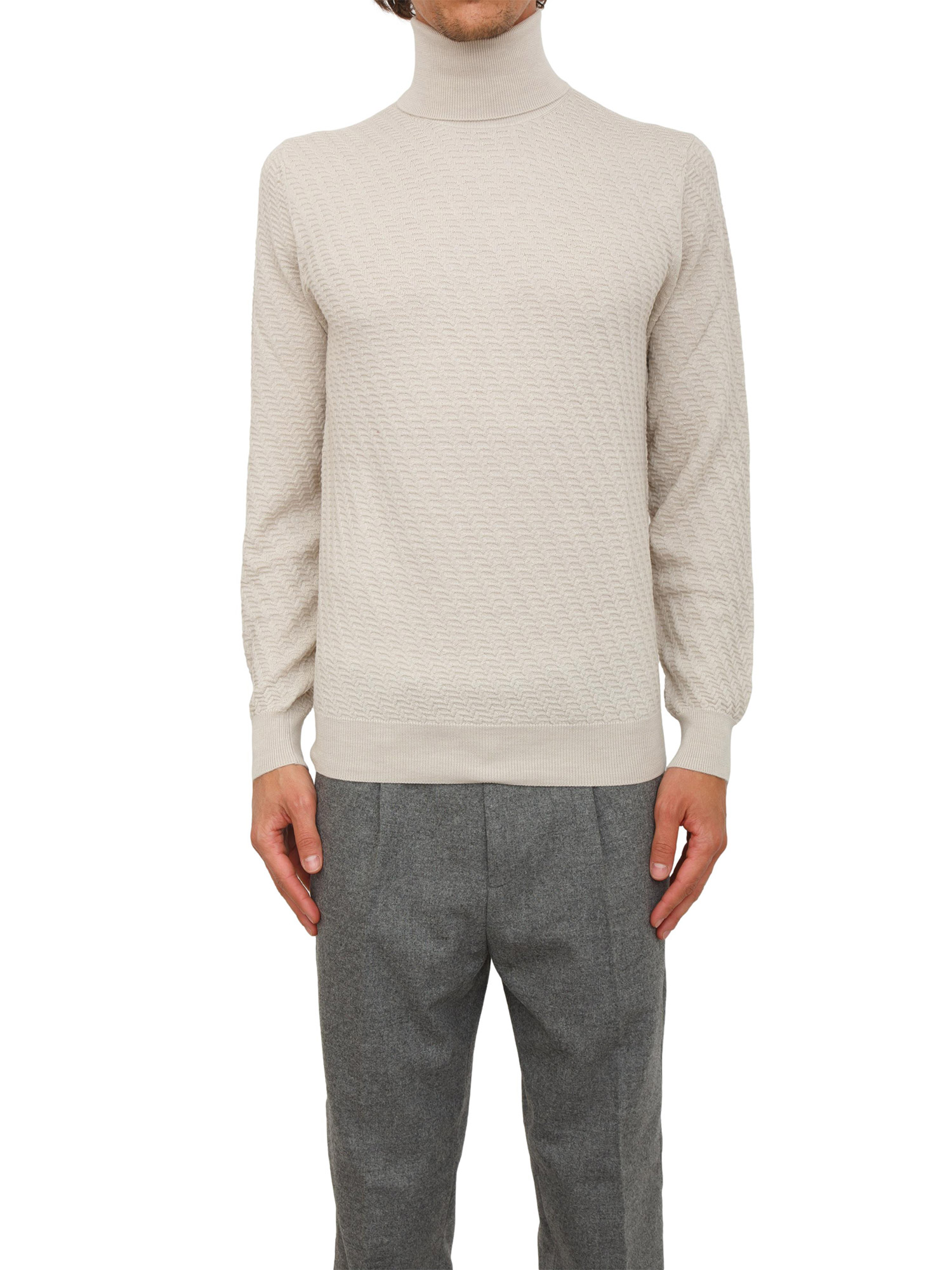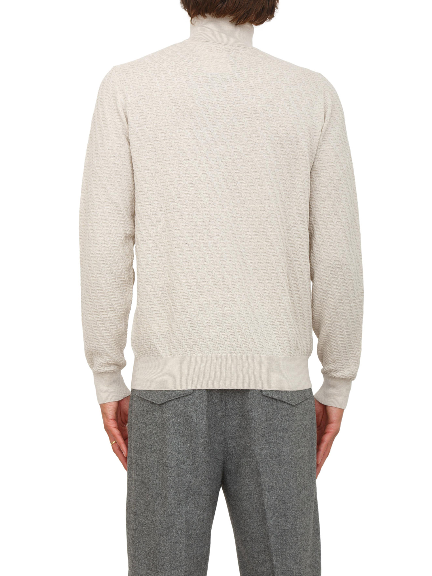 Maglia lupetto Paolo Pecora in lana panna con lavorazione wave