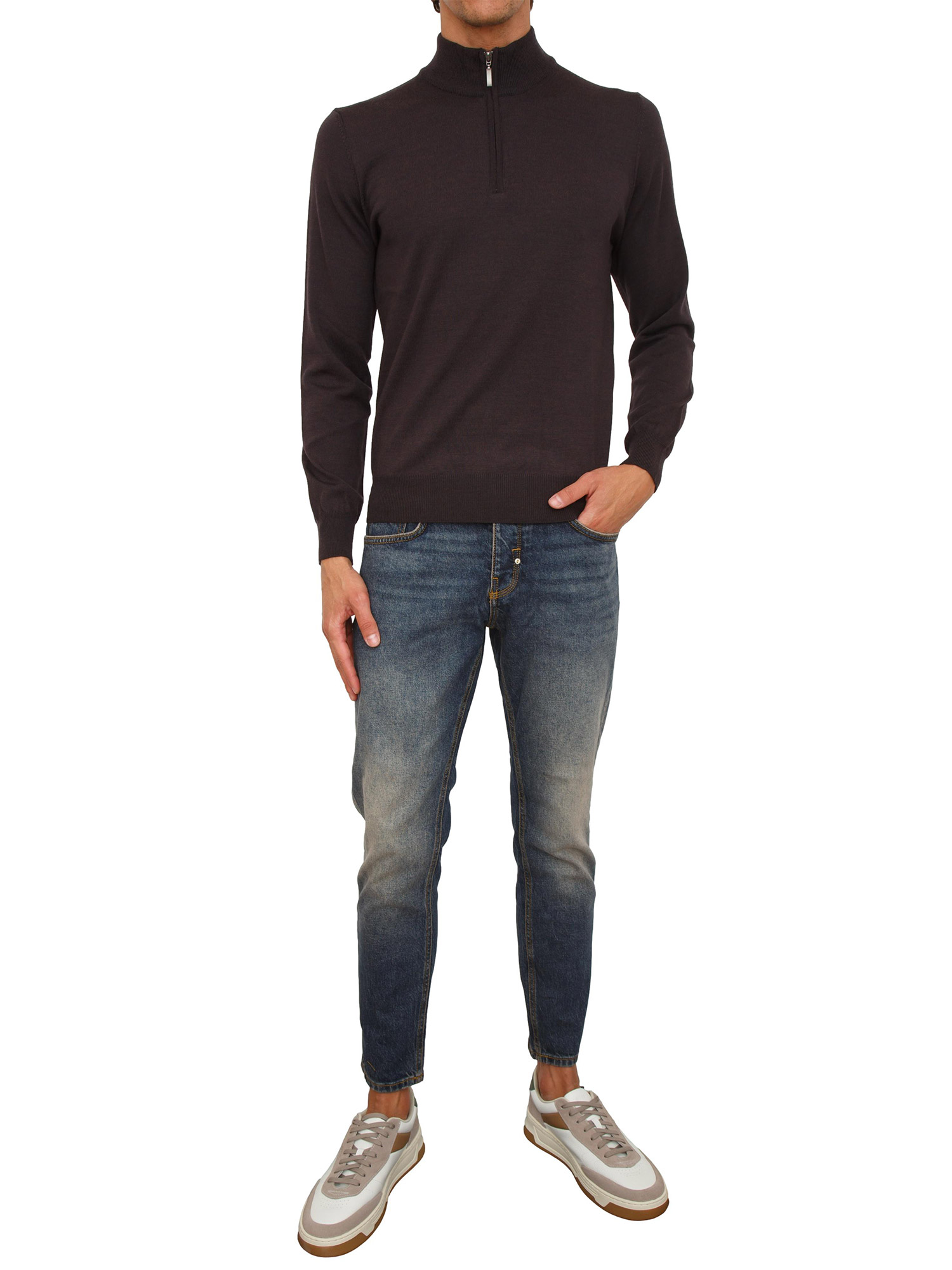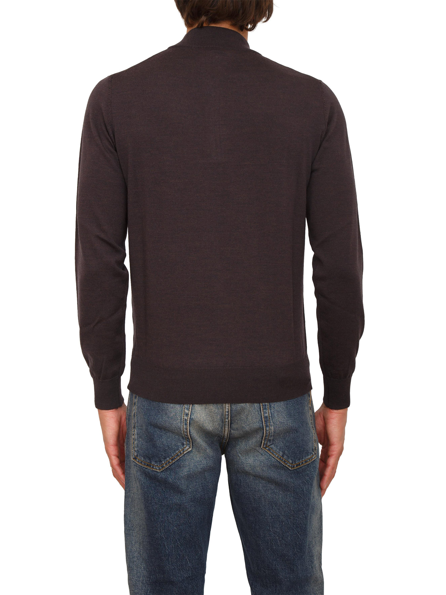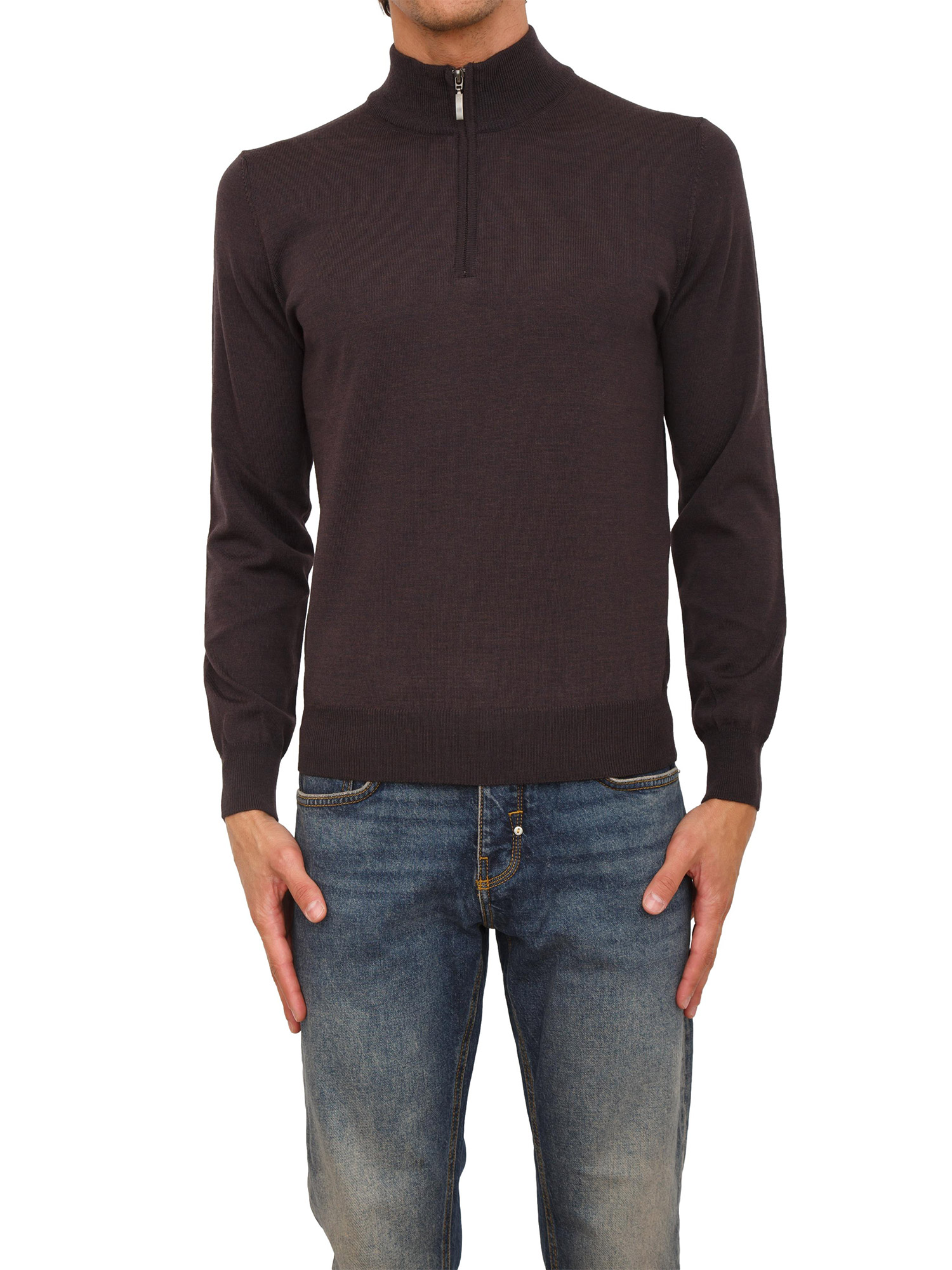 Maglia mezza zip manica lunga Aiace Galassi in pura lana marrone