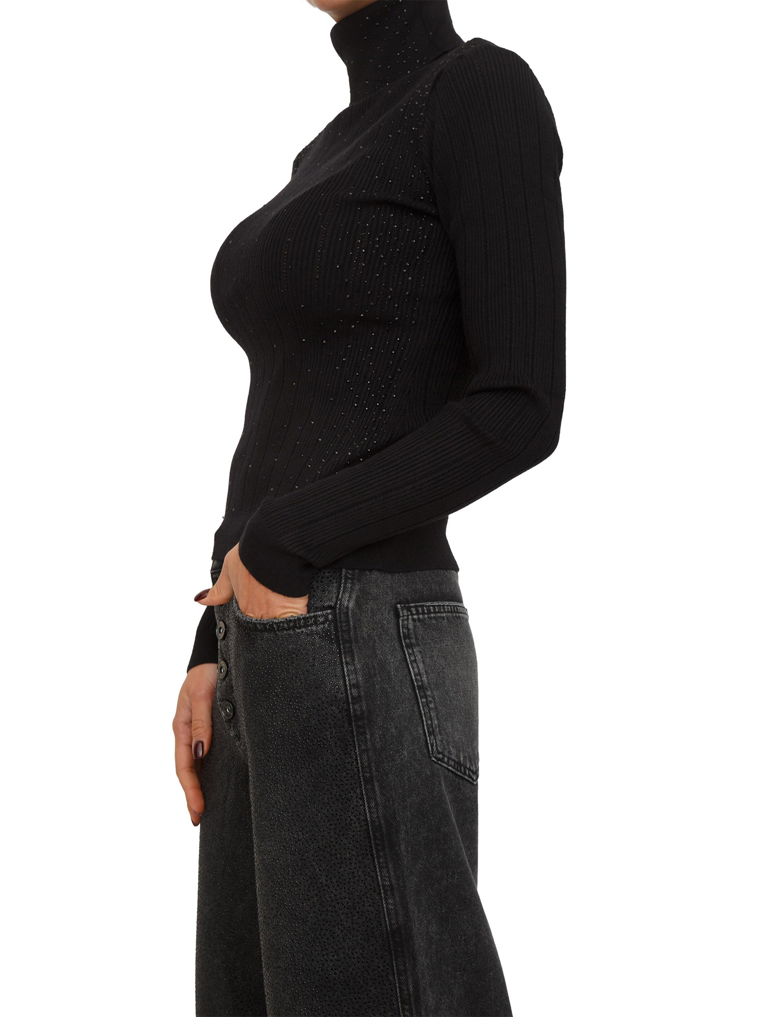 Maglia nera dolcevita Fracomina in viscosa con strass