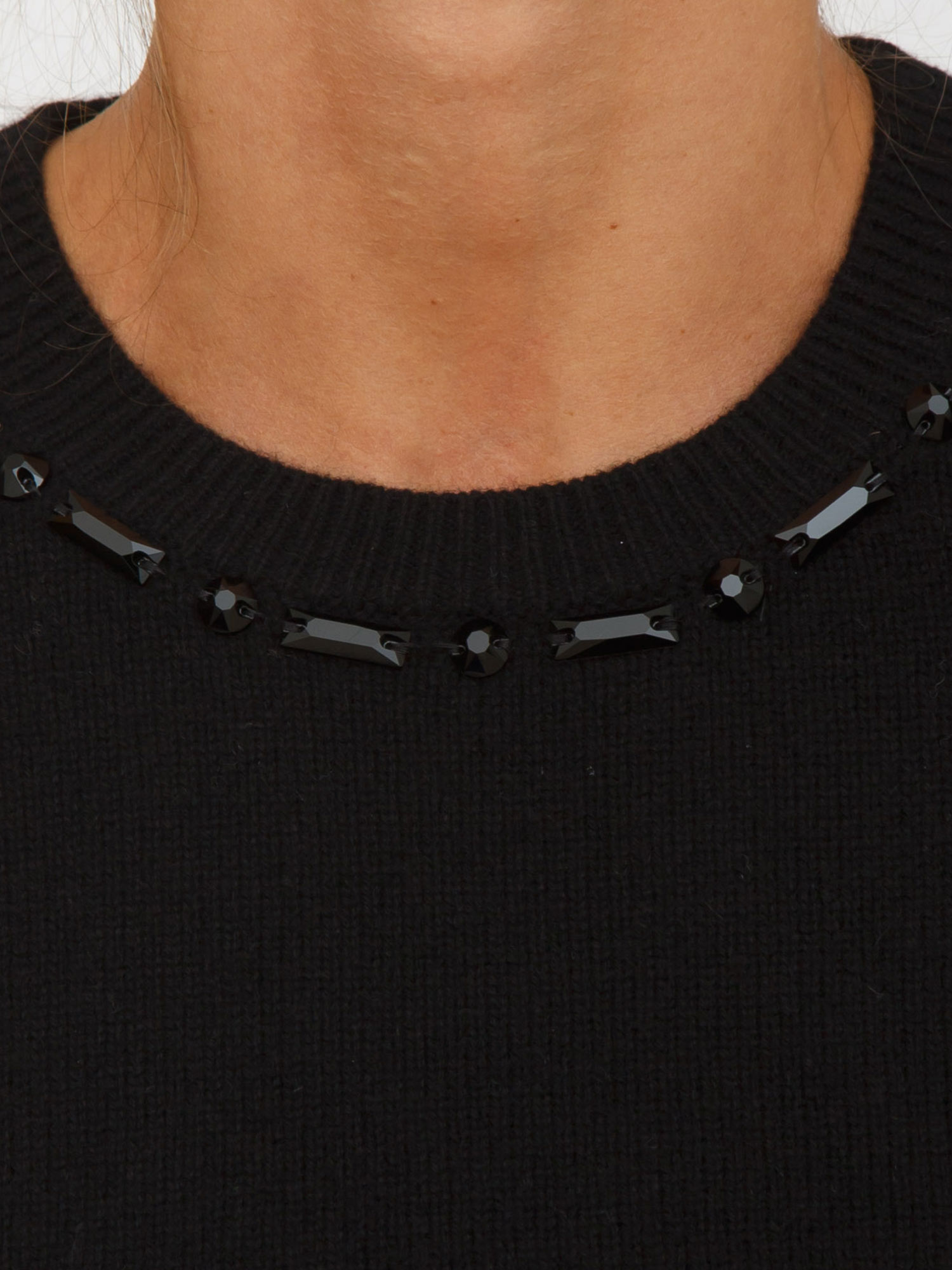 Raffinata e luminosa, questa maglia Marbeja Nenette a maniche corte, realizzata in misto cashmere e lana ed impreziosita da castoni decorativi sul girocollo. Un capo versatile, ideale per uno stile ricercato e disinvolto. La modella è alta 1.72 e indossa la taglia S.