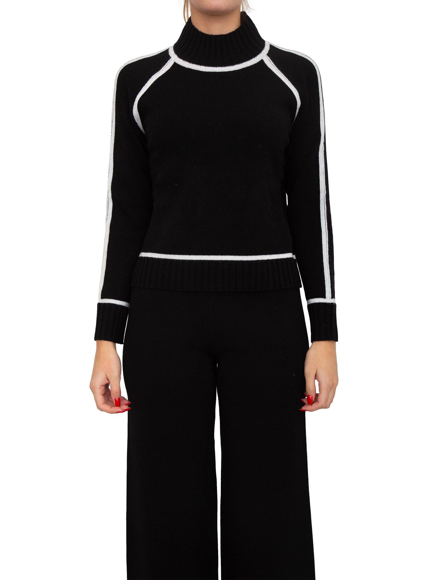 Maglione Pescara Max Mara realizzato in misto lana e cashmere dalla vestibilità morbida e orli dritti. Design essenziale caratterizato da contrasti che donano a questo capo una raffinatezza unica. La modella è alta 1.77 e indossa la taglia XS.