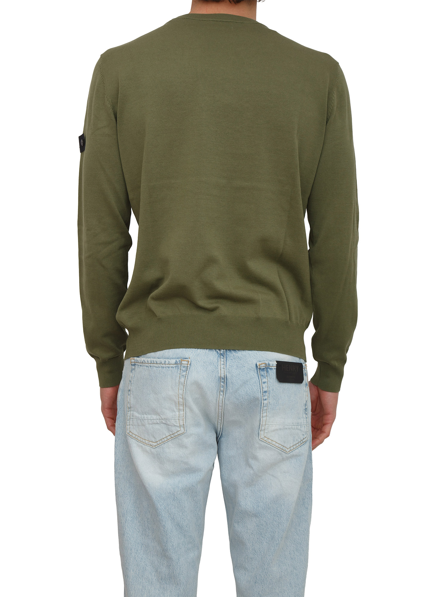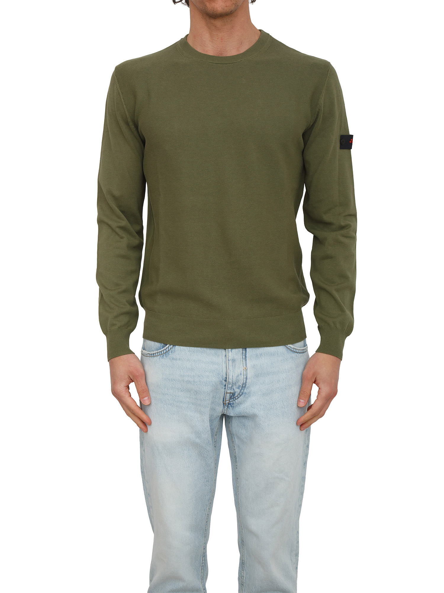 Maglia Peuterey uomo in tricot di cotone dalla vestibilità regular, caratterizzata da girocollo e maniche lunghe. Il design essenziale è impreziosito dal logo Peuterey sulla manica, applicato con due bottoncini. Fondo e polsini a costine definiscono la silhouette e assicurano una vestibilità confortevole. Il modello è alto 1.90m e indossa la taglia L.