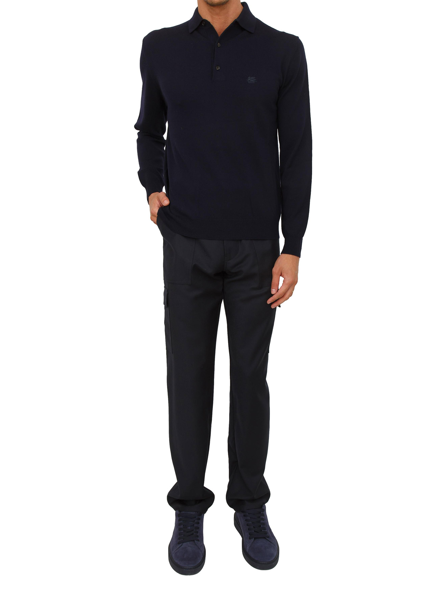 Maglia polo Etro uomo in misto lana blu