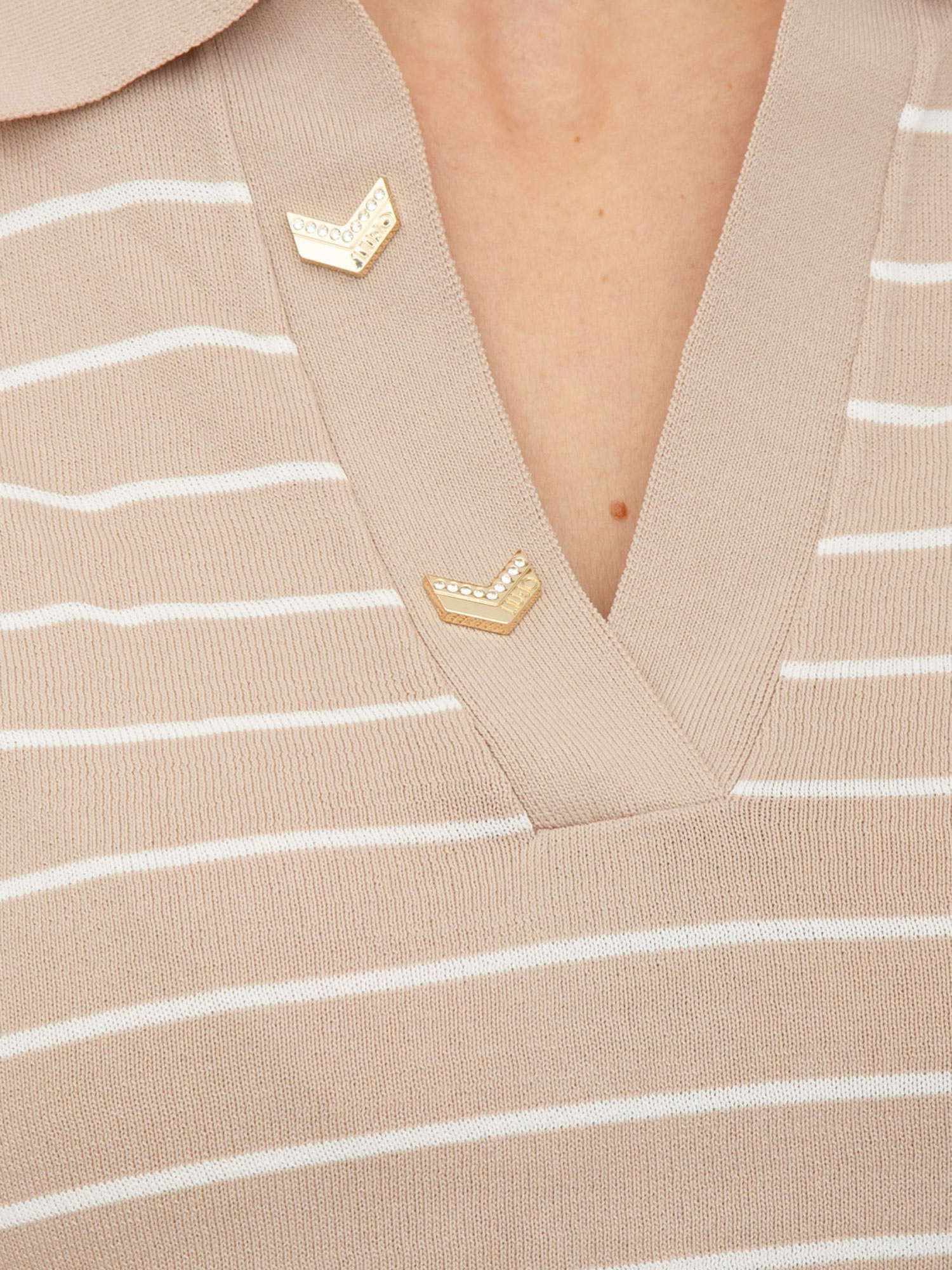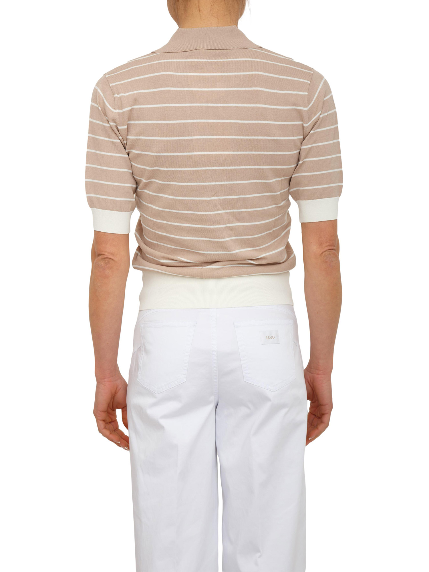 Maglia polo Liu Jo donna in misto viscosa beige a righe